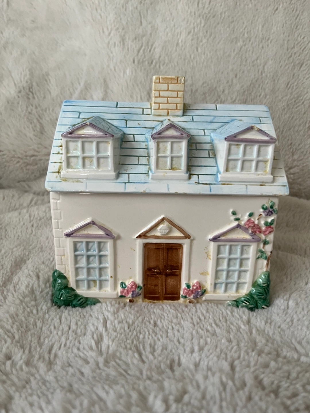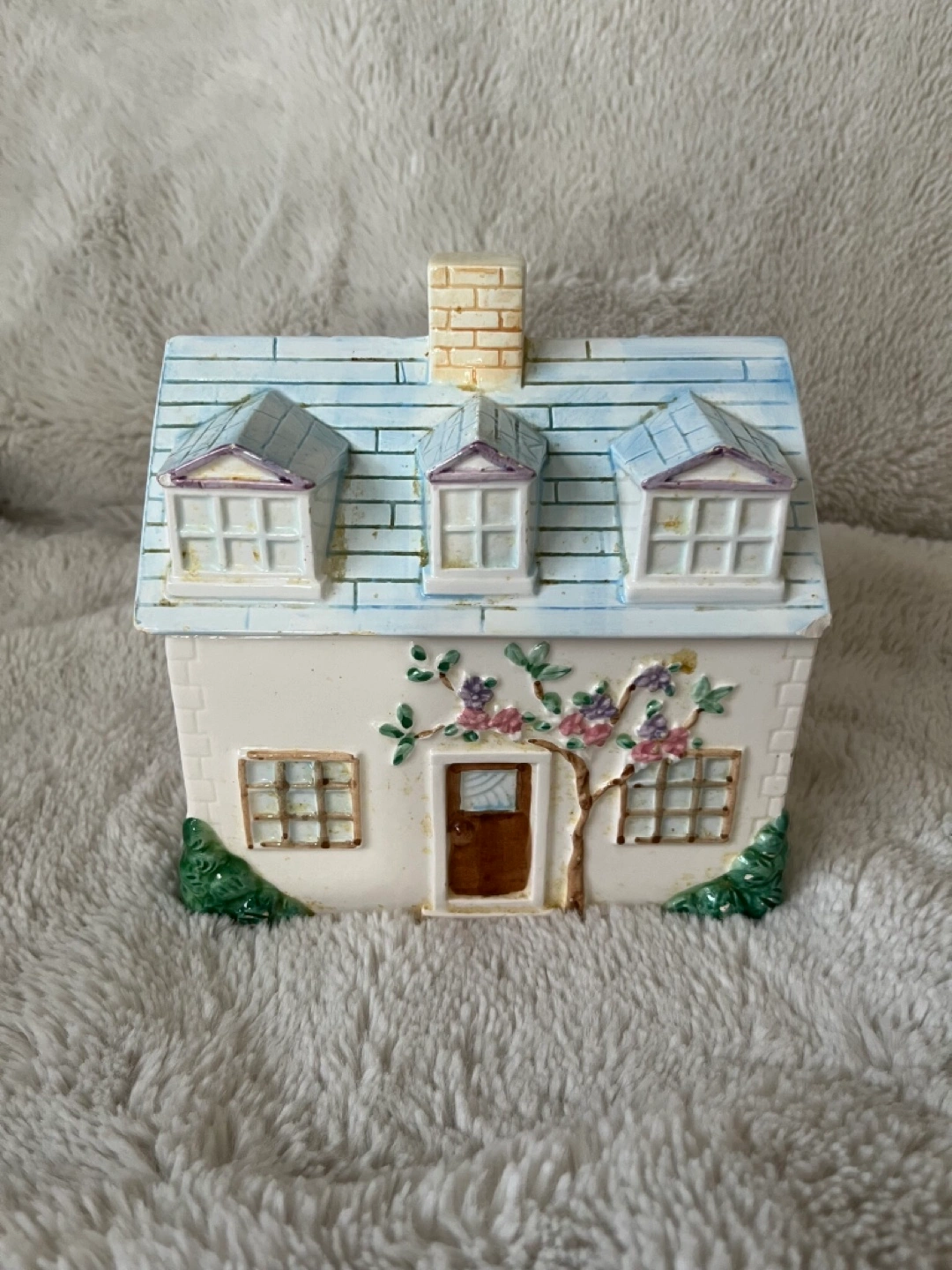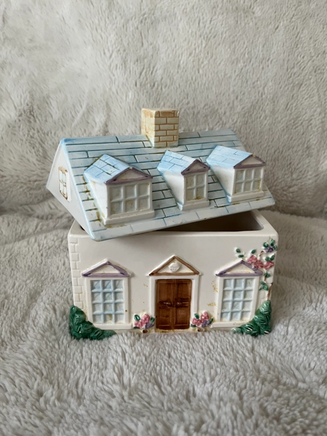 Adorable vintage ceramic house trinket box. Features a charming cottage design with floral details. Hand-painted in Japan. Perfect for storing small treasures or as a decorative accent. Cash only Bathurst And Steeles Pick up