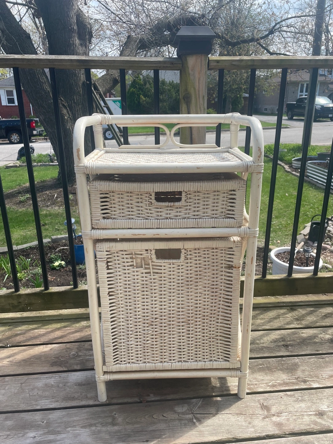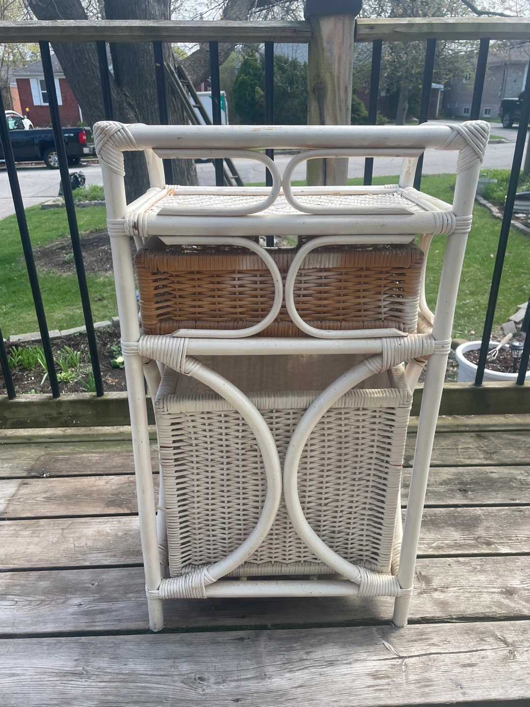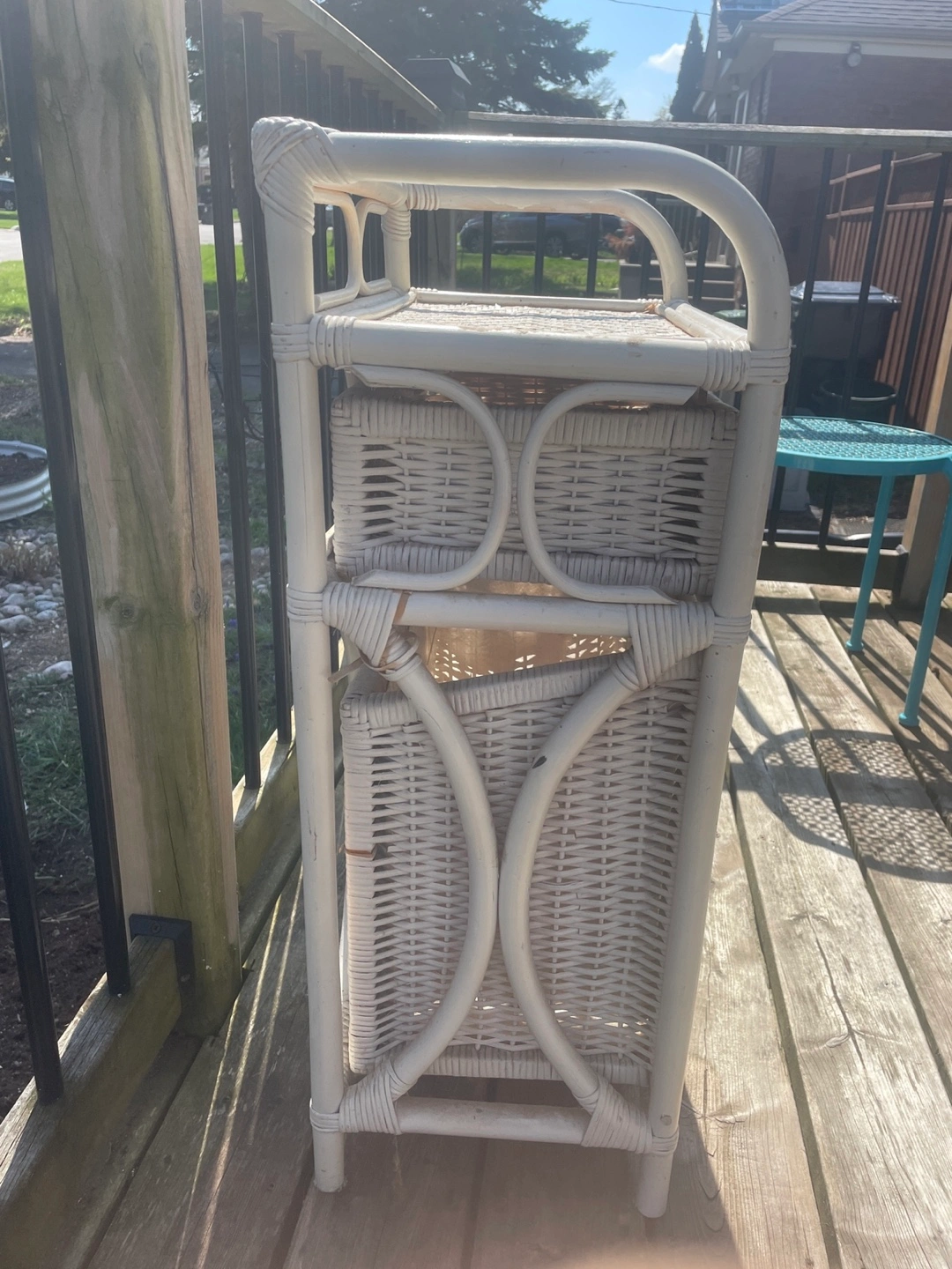 ✨ the piece shows its wear, which adds to its vintage character (see photos). Or, treat it as a project piece, and repaint. I was actually going to repaint this, but I ran out of time. I have synthetic wicker pieces I can give you to fill in the broken wicker. If you plan to repaint, happy to provide any advice. Needs a good cleaning regardless. ✨