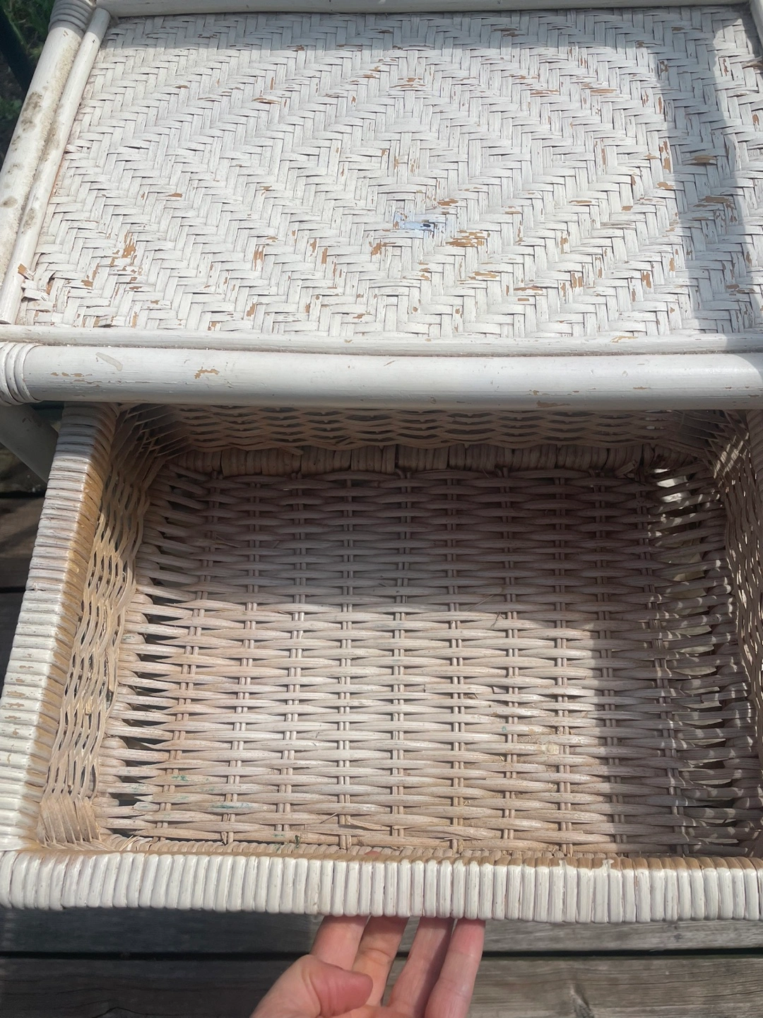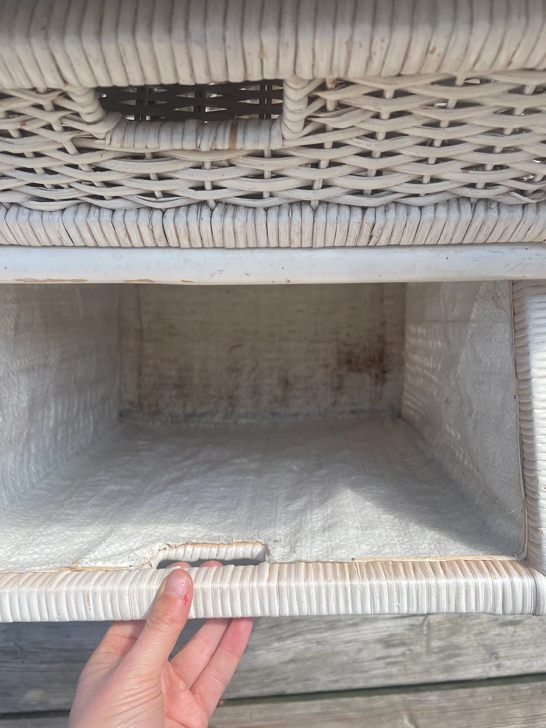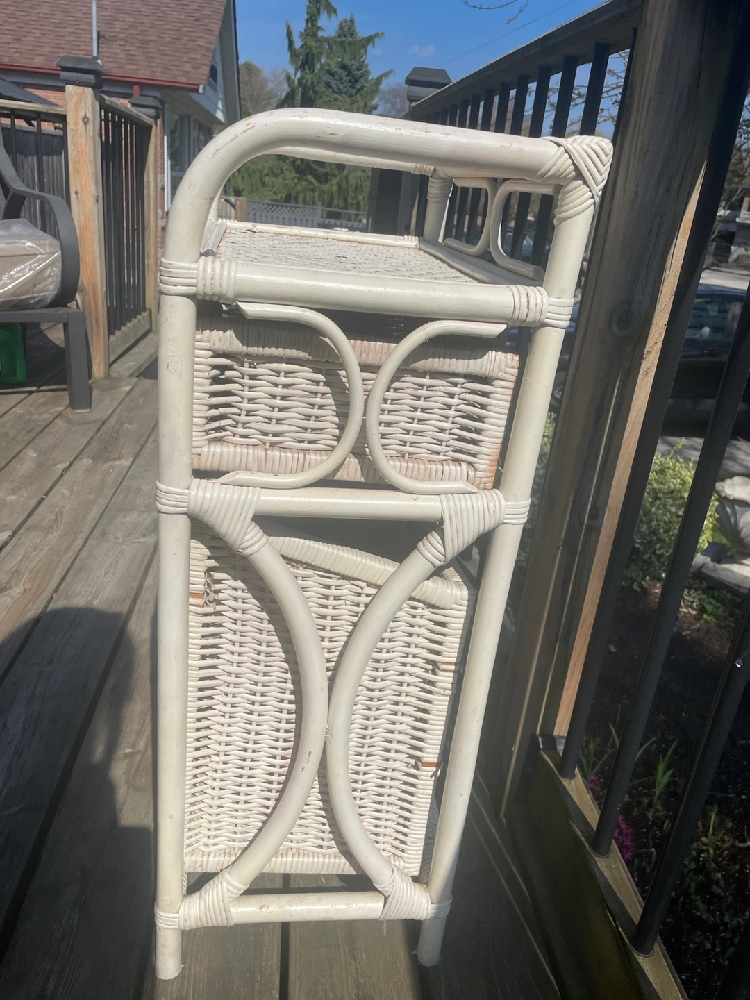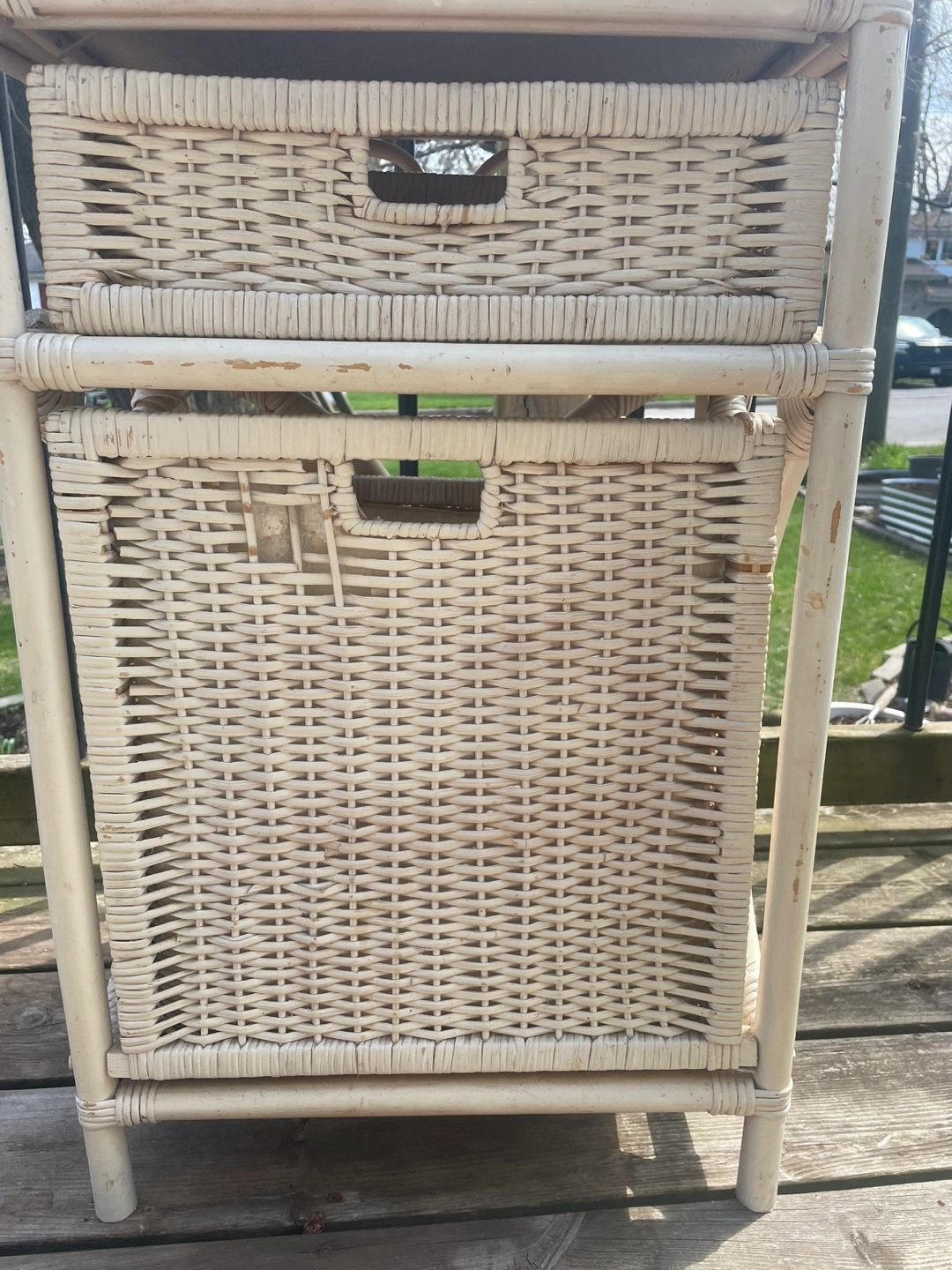 ✨ the piece shows its wear, which adds to its vintage character (see photos). Or, treat it as a project piece, and repaint. I was actually going to repaint this, but I ran out of time. I have synthetic wicker pieces I can give you to fill in the broken wicker. If you plan to repaint, happy to provide any advice. Needs a good cleaning regardless. ✨