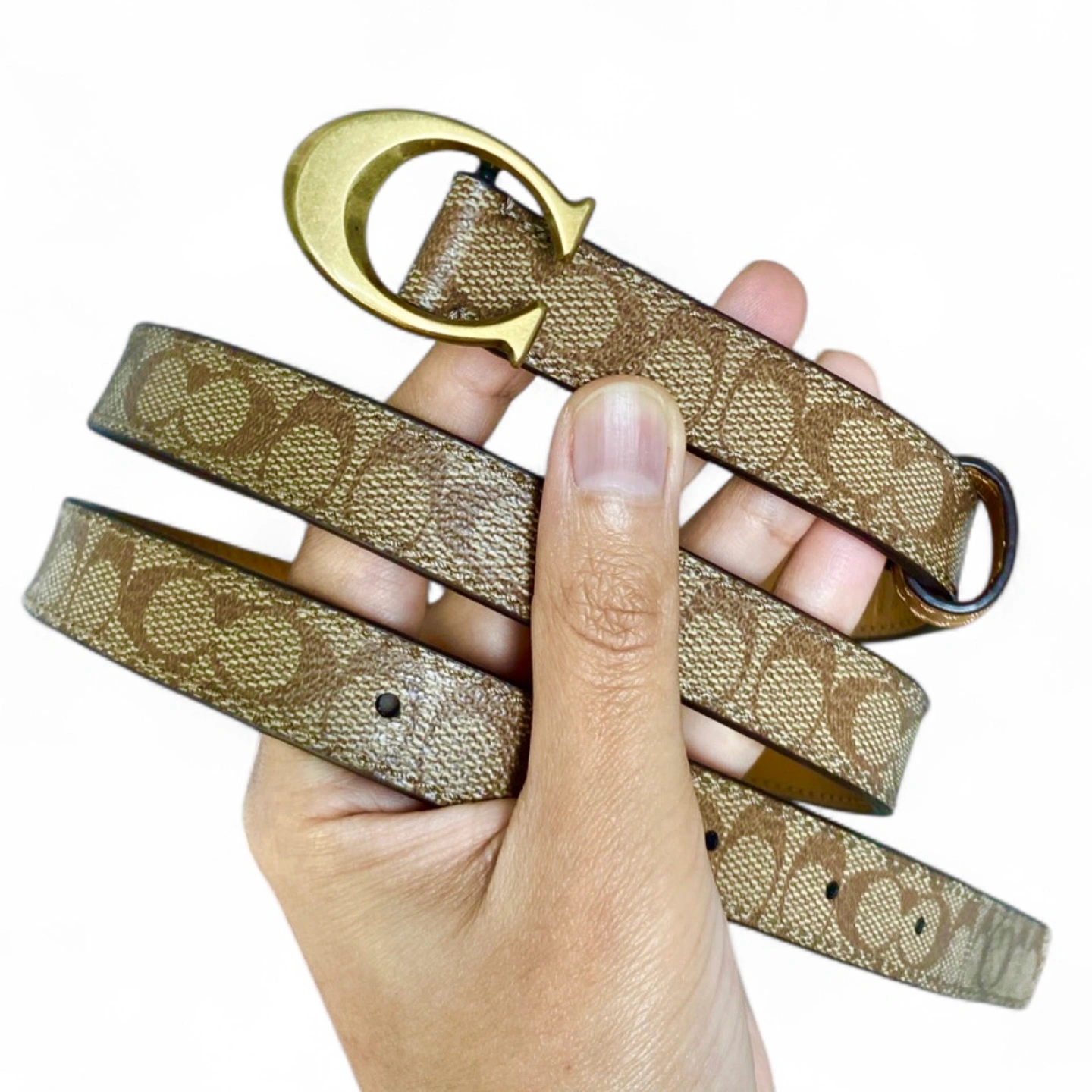 218Upgrade your look with this classic Coach Signature belt, featuring the iconic “C” logo pattern and sleek leather trim. Perfect for both casual and dressy outfits. • Condition: Brand new • Size: 18 MM • Color: Tan • Coach stamp on buckle and serial number inside ♥️CHECK OUT MY OTHER LISTINGS!!
