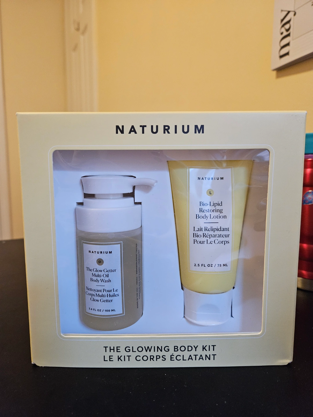 New, unopened NATURIUM Glowing Body Kit. Includes body wash and body lotion. Perfect for smooth, hydrated, and glowing skin.