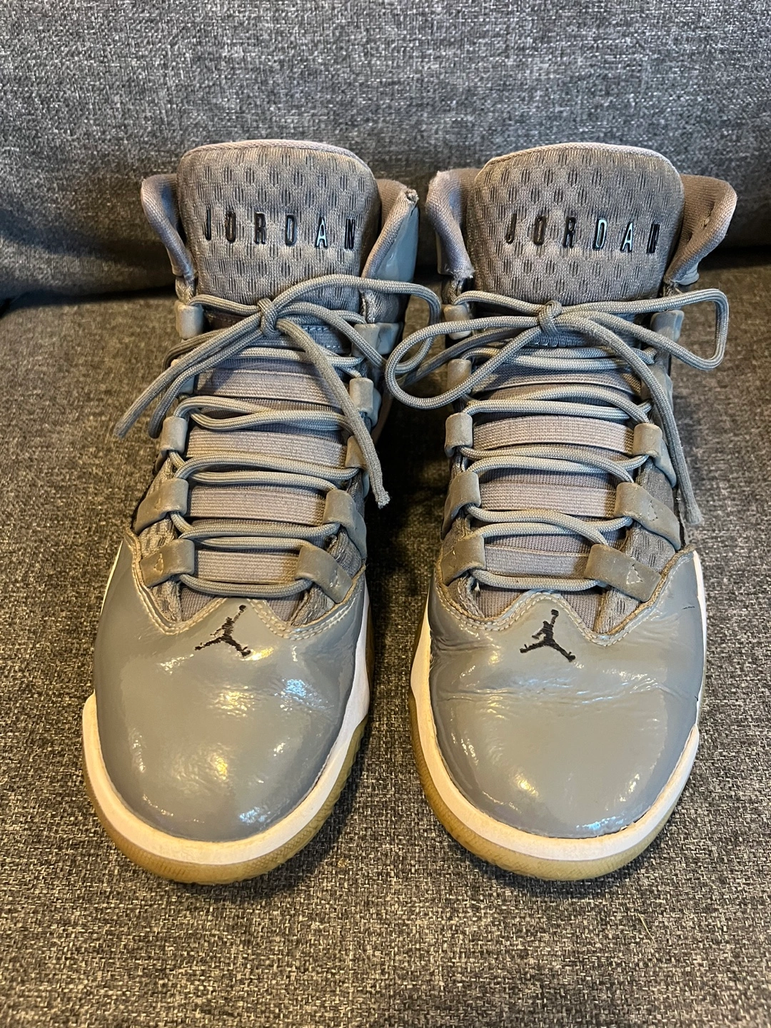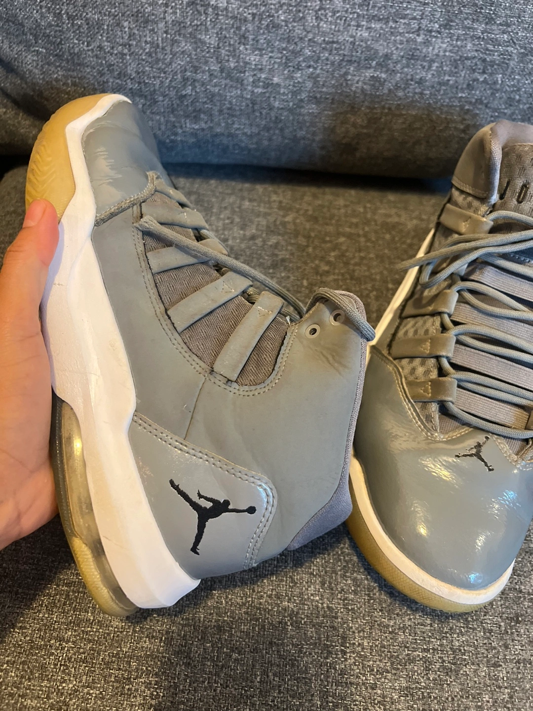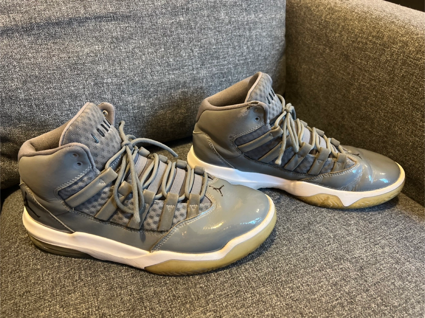 Pre-owned Jordan Jumpman Team 1 basketball shoes. Grey colourway. High-top style. Some scuffs and marks present. In used conditions but extremely clean.