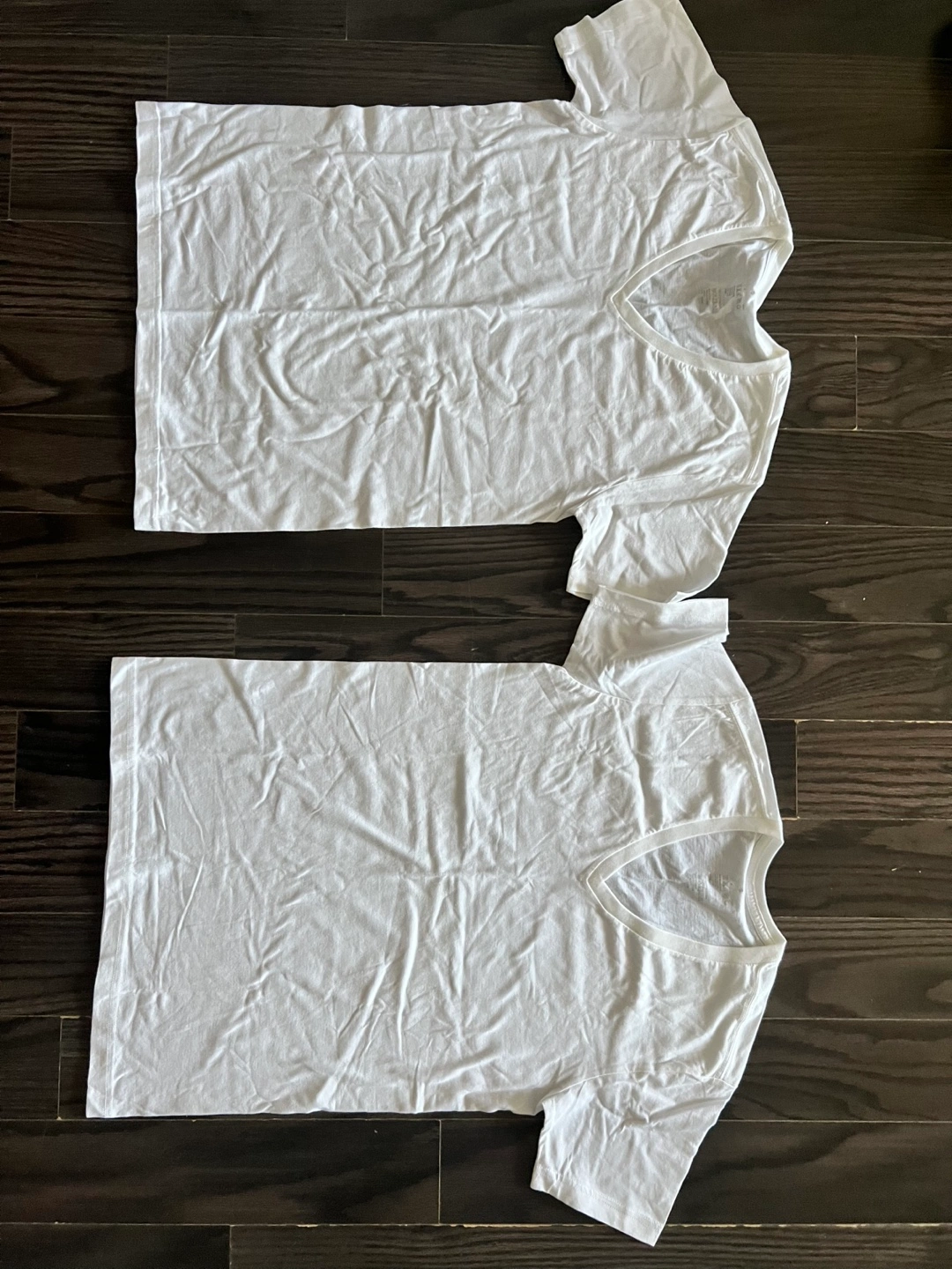 Pair of white v-neck t-shirts. Size small. 100% cotton. Short sleeves. Good for layering or everyday wear.
