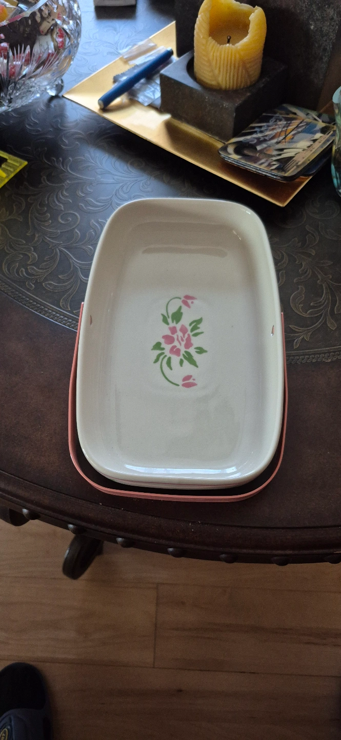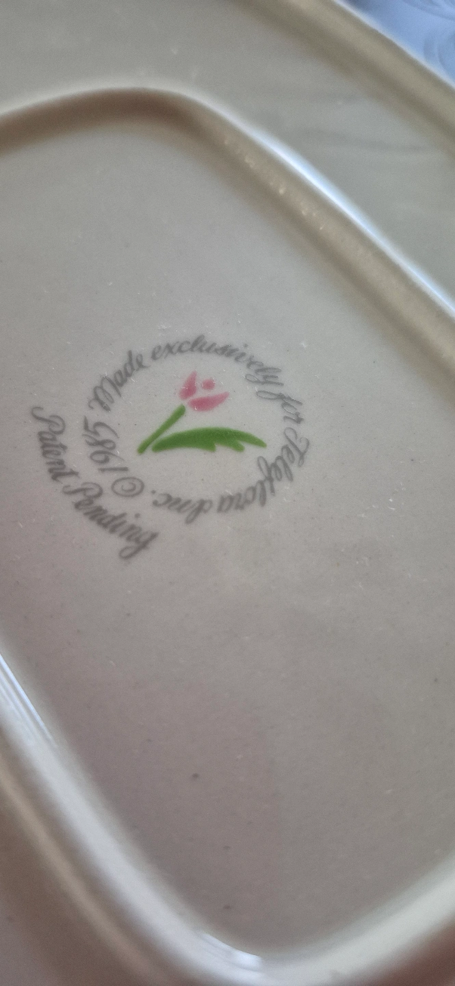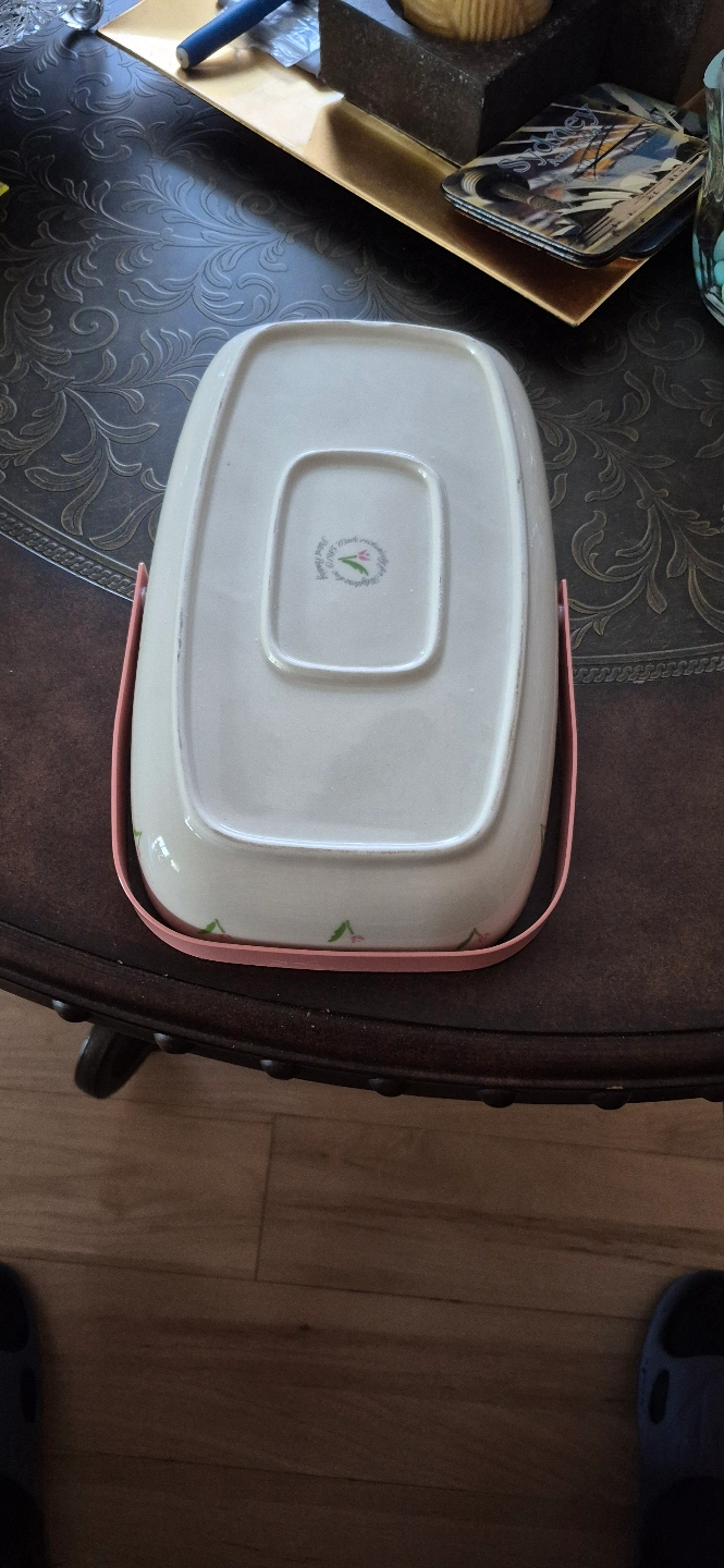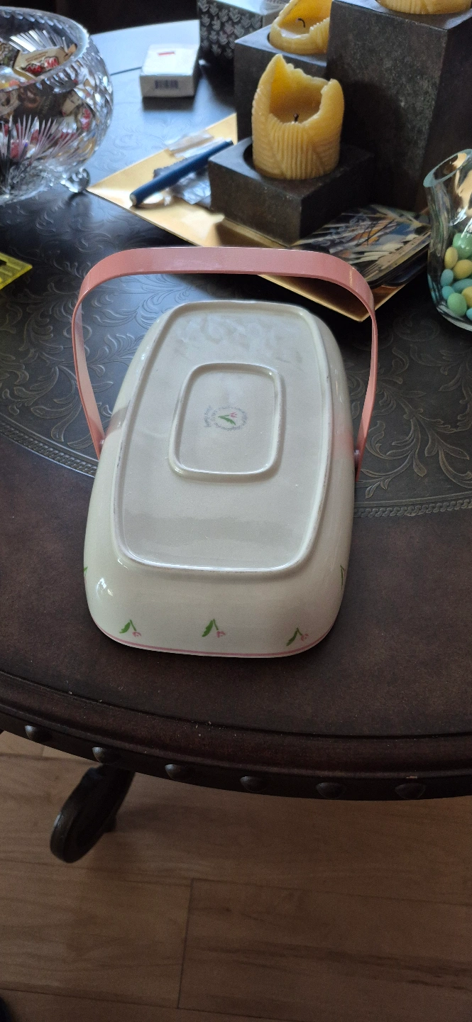 Adorable vintage 1985 teleflora ceramic serving tray. Features a pink steel handle and floral designs. Add a touch of retro elegance to your table. Perfect for bread, snacks, or other small items. Made exclusively for Teleflora 1985. Patent pending. never used, collecting dust. looking for a new home.
