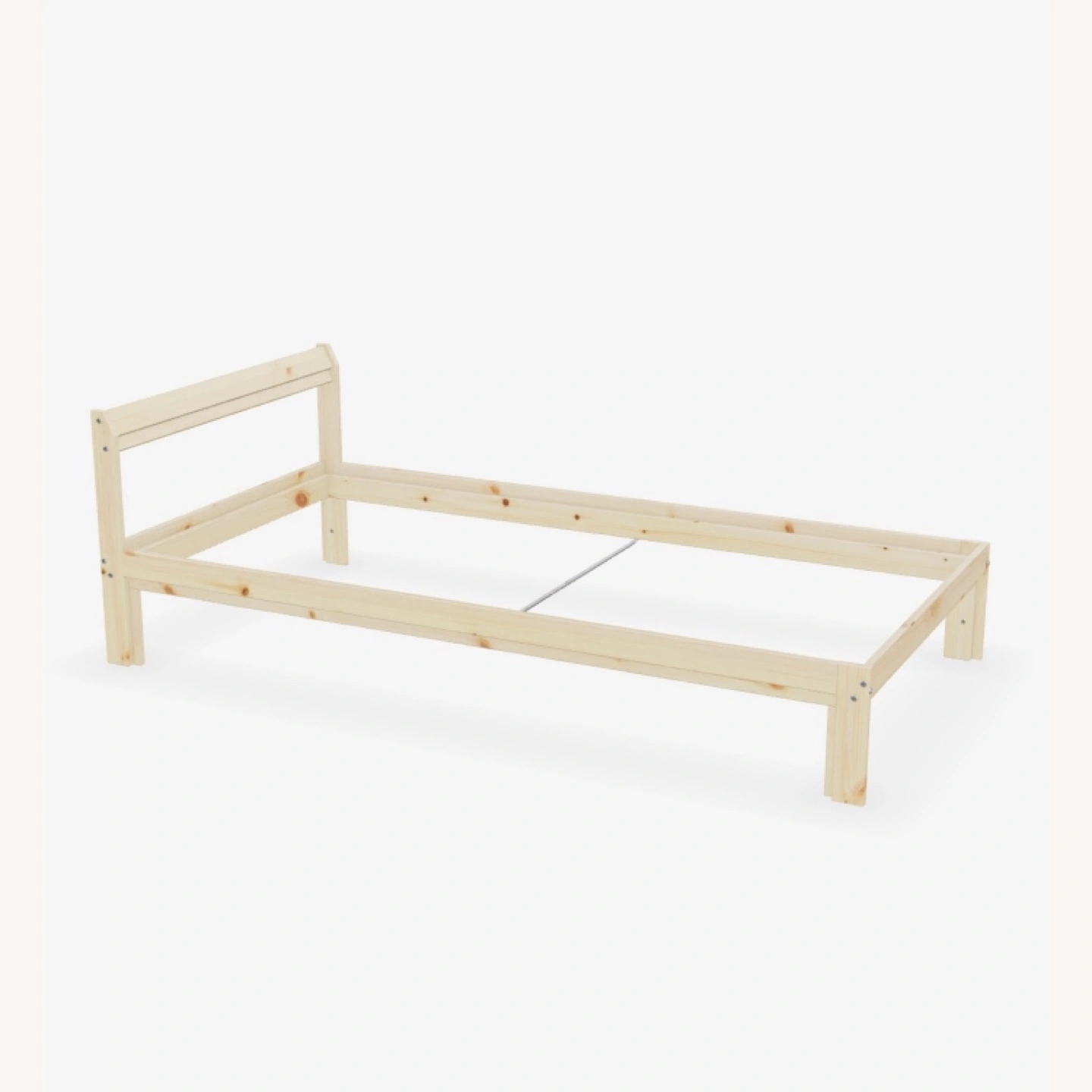 Solid wooden bed frame and slats for a single twin bed.