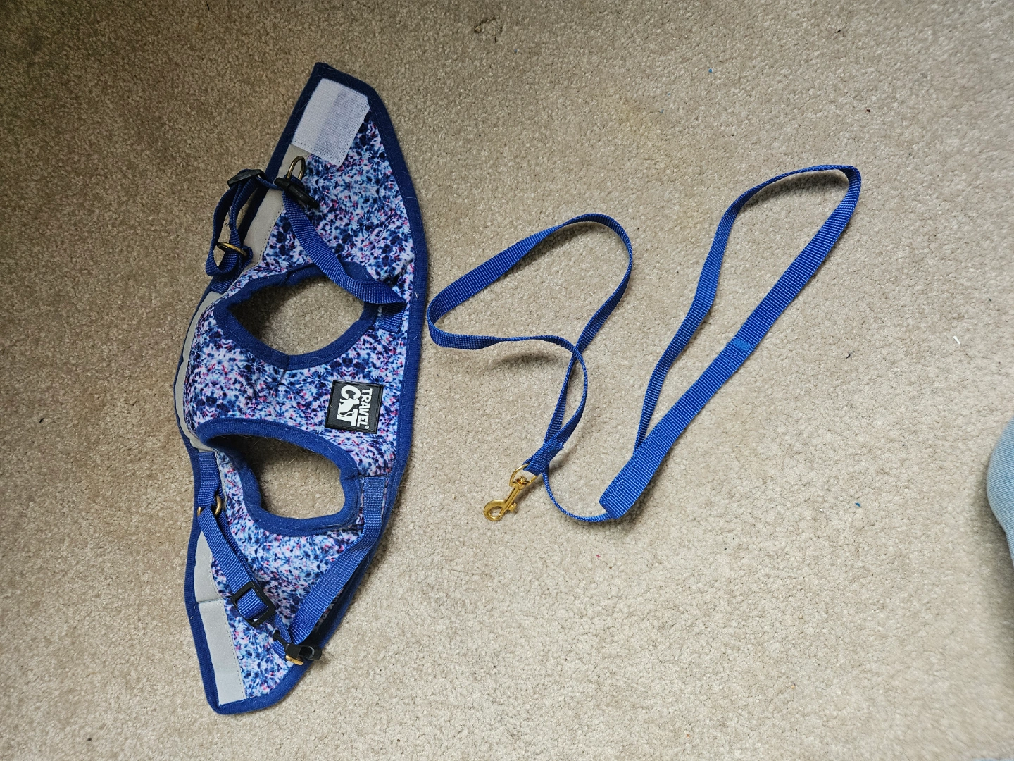 Cat harness and leash set from Travel Cat, sz L. Basically brand new/never used, turns out my cat doesn't like walking :') Pick up only, closest intersection is College and Lansdowne
