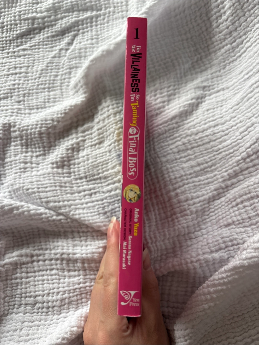 First volume of the manga series *I'm the Villainess, So I'm Taming the Final Boss*. Features colourful artwork. Excellent condition.
