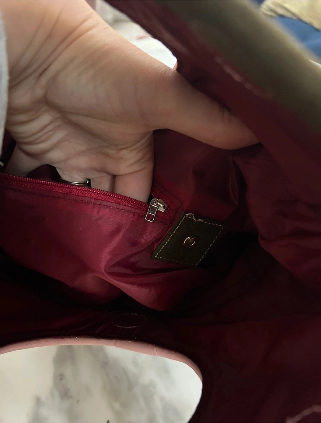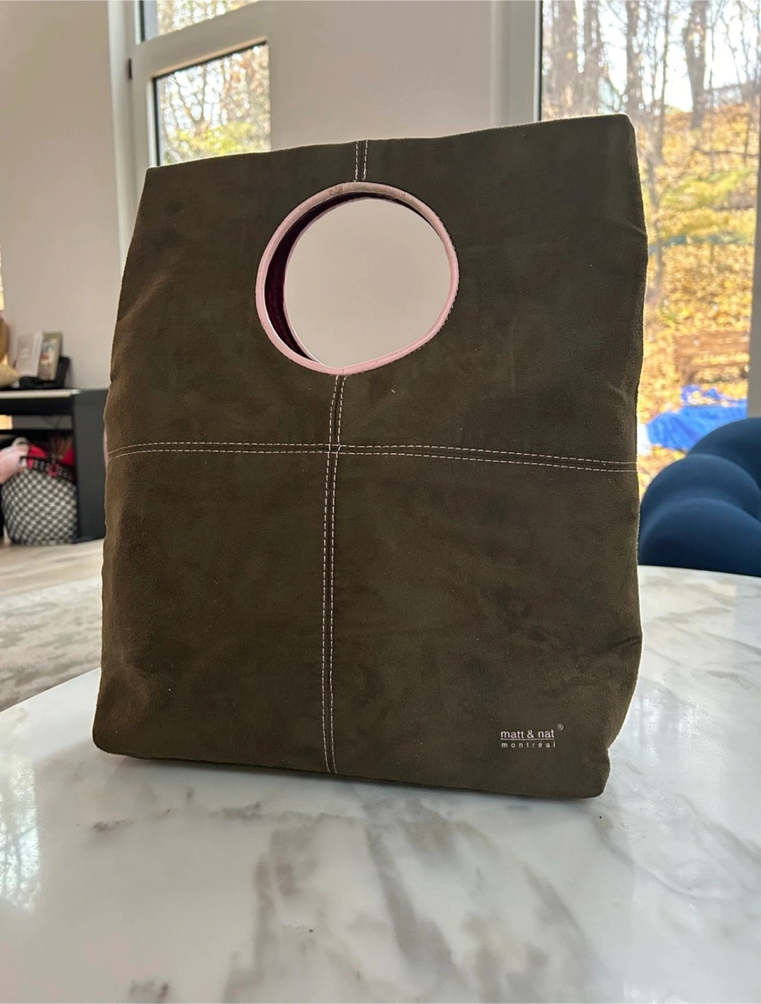 Really cute vegan suede forest green purse by Matt & nat. In excellent condition! Magnetic clasps, beautiful red lining inside. Pick up in the Beaches at Queen and Victoria Park.