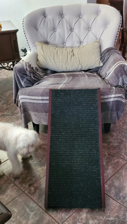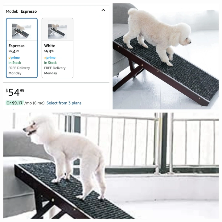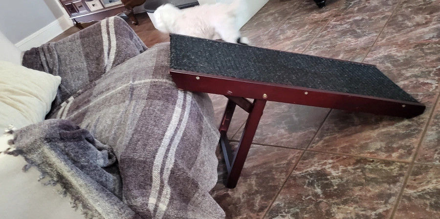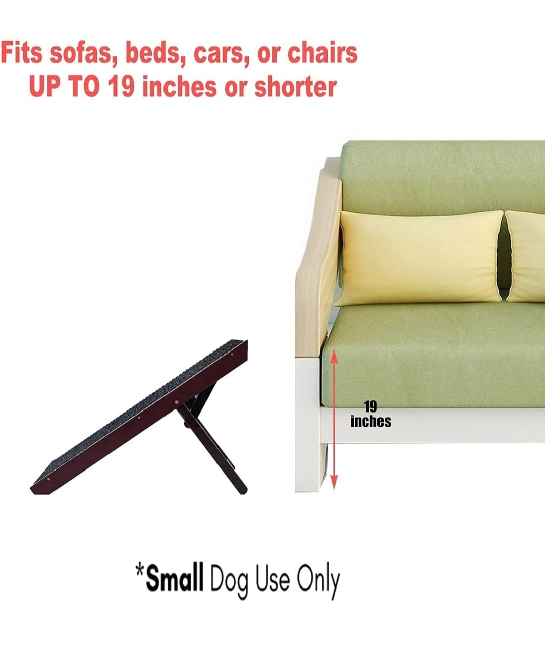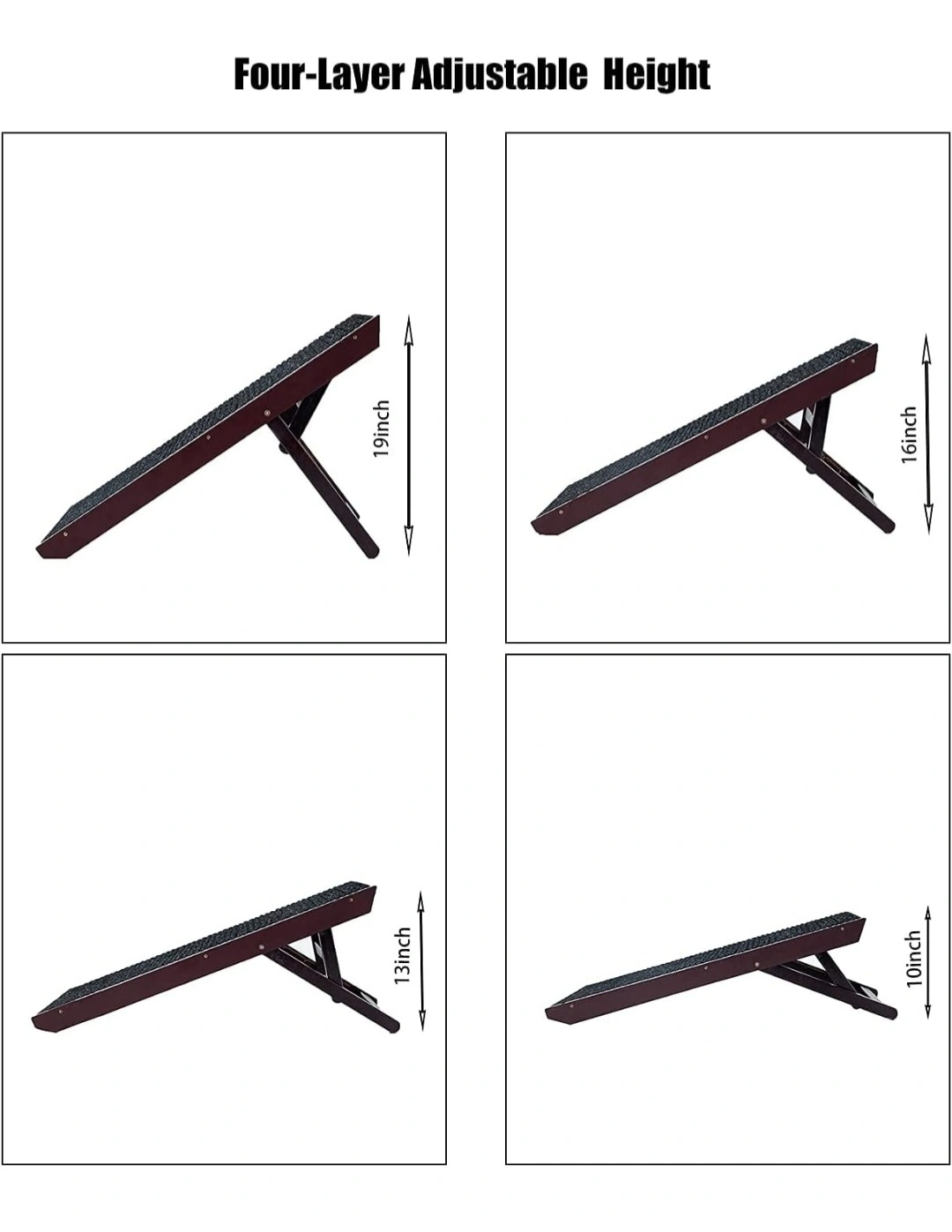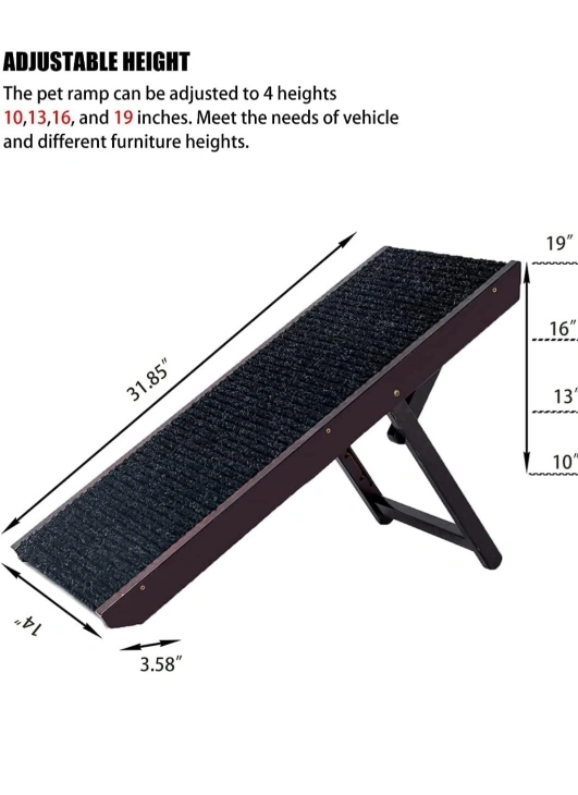 Tall Adjustable Pet Ramp - Wooden Folding Portable Dog & Cat Ramp - Non Slip Carpet Surface 4 Levels Height Adjustable Ramp Up to 90 Pounds - Small Dog Use Only.