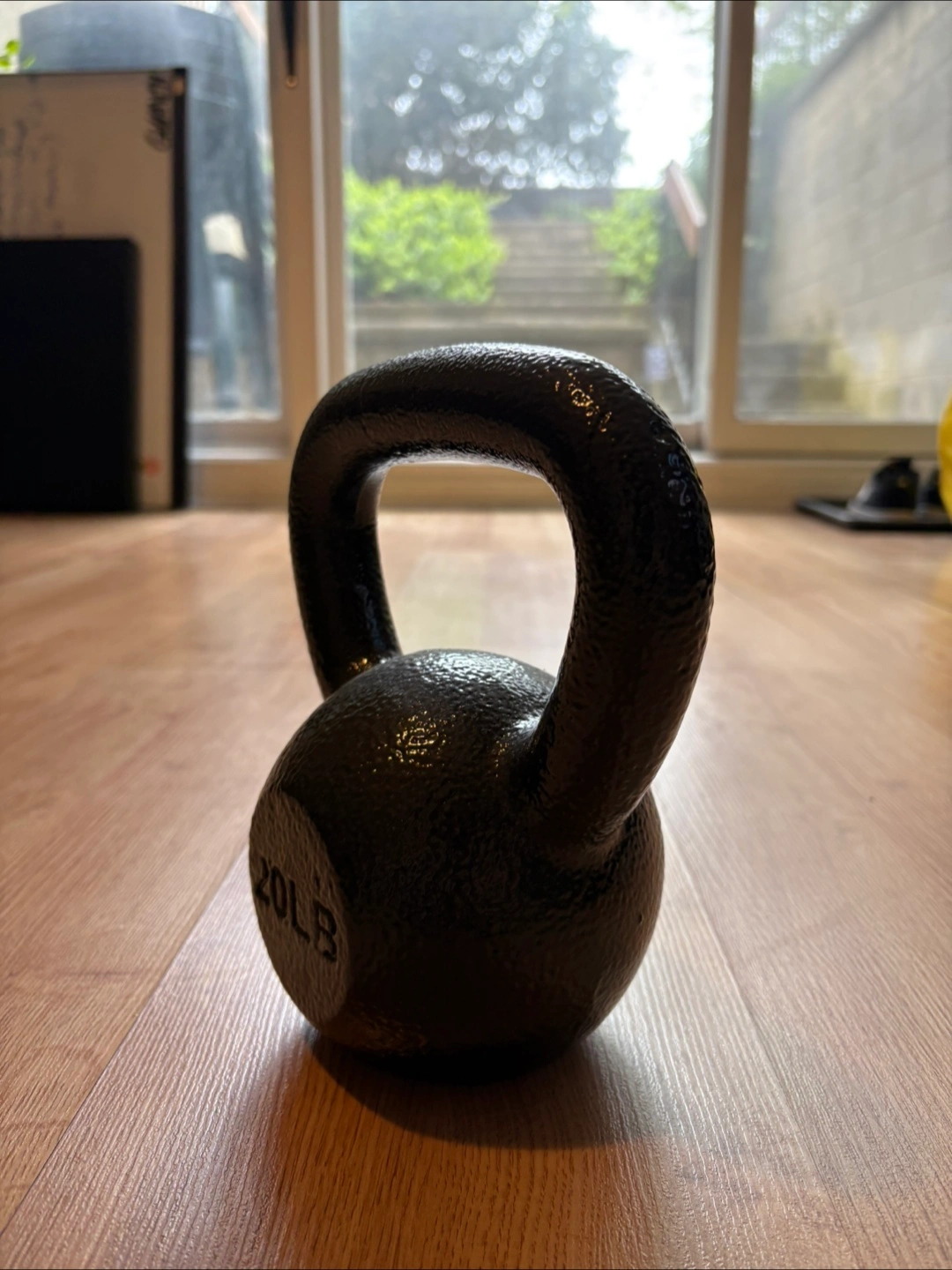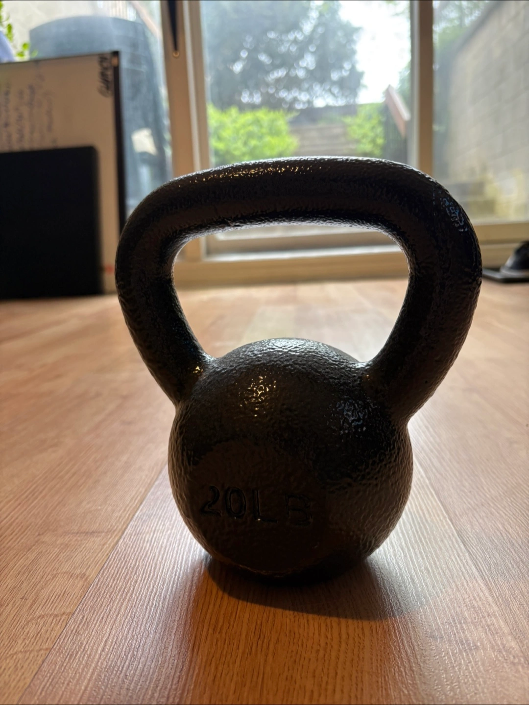 Selling a 20lb (9.1kg) cast iron kettlebell from Amazon Basics.