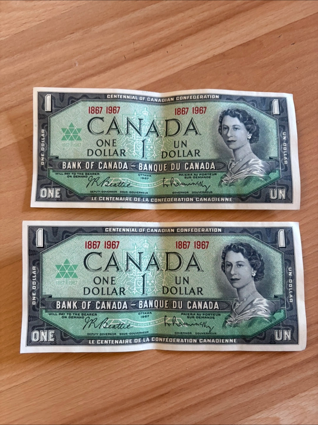 1967 Bills $1 One Dollar Banknote Centennial Canadian Note $15 each firm or both for $25 Located in Falconridge NE