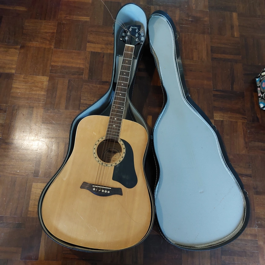 Used acoustic guitar. Some scratches and minor wear & tear. Good for beginners for practice.
