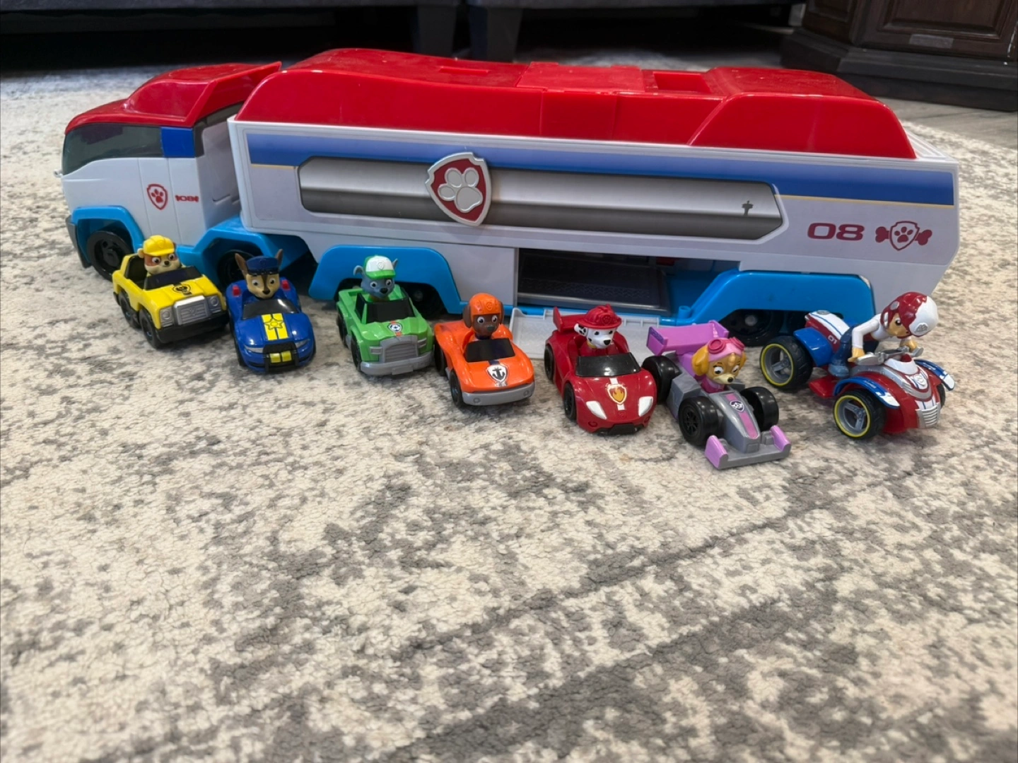 27Large transporter truck. Includes eight collectible die-cast vehicles. Great for imaginative play. Pre-owned.