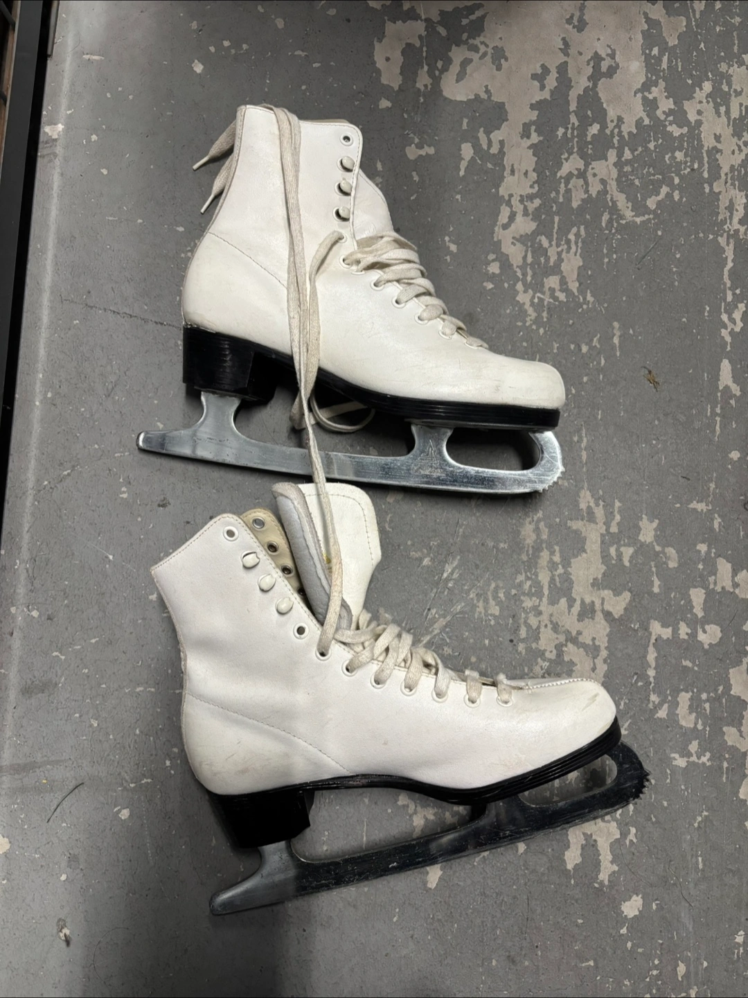 Used figure skates in women’s size 6. Signs of wear and needs polishing but in very usable condition! Selling because they don’t fit me anymore and I have another pair.