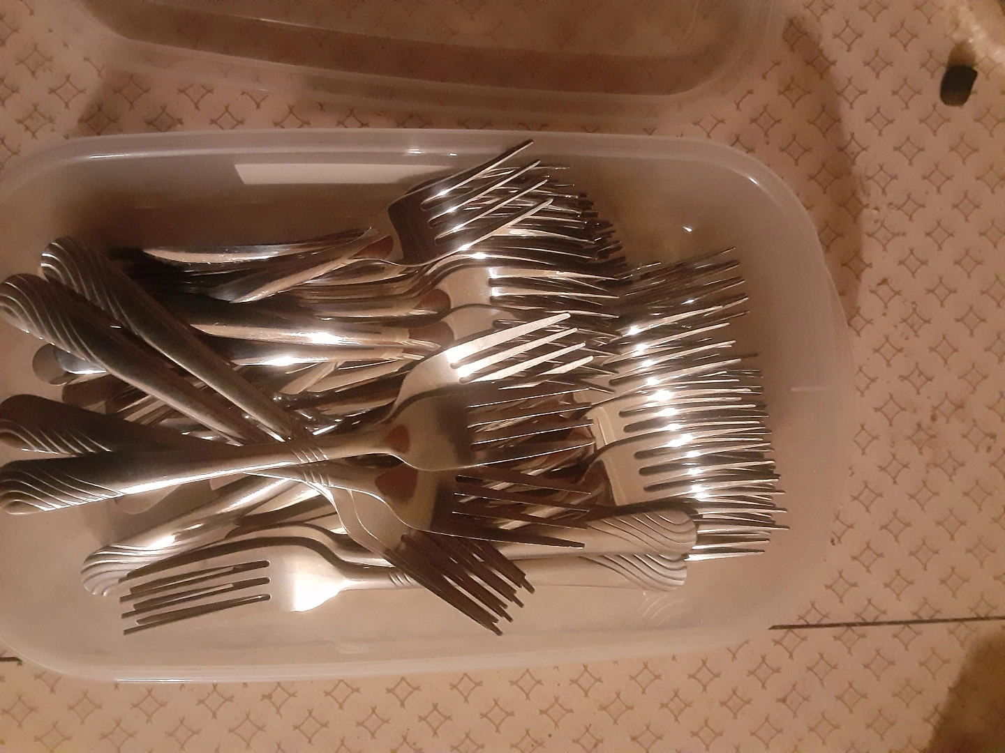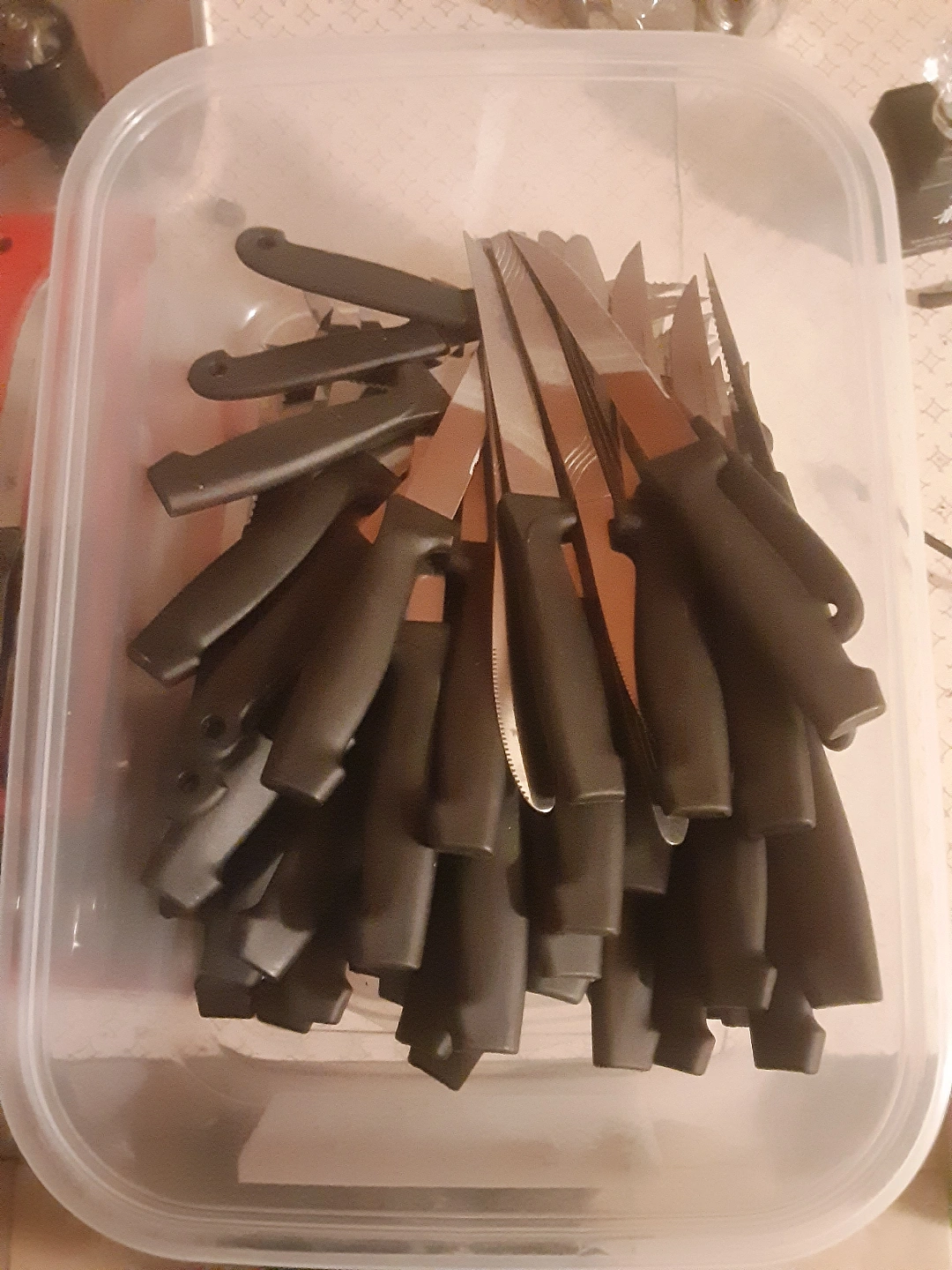 also includes sets of used steak knifes and forks.