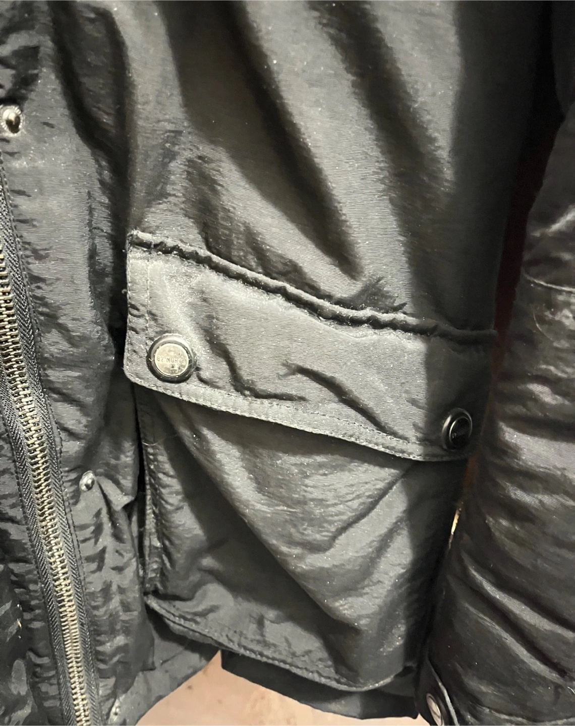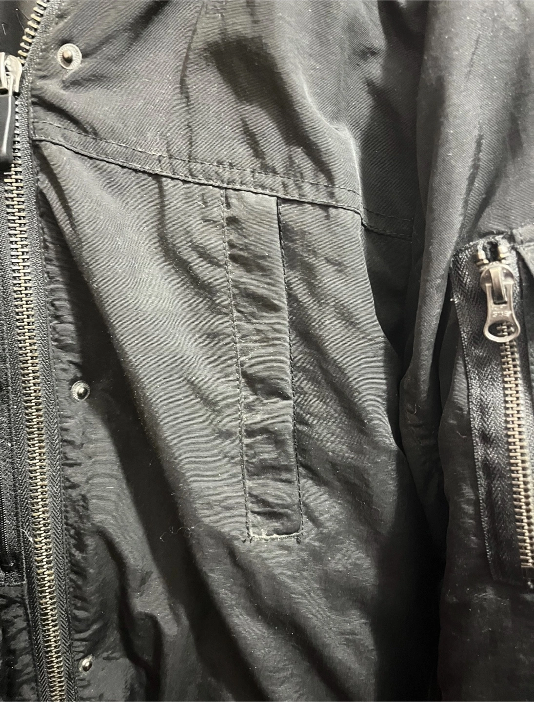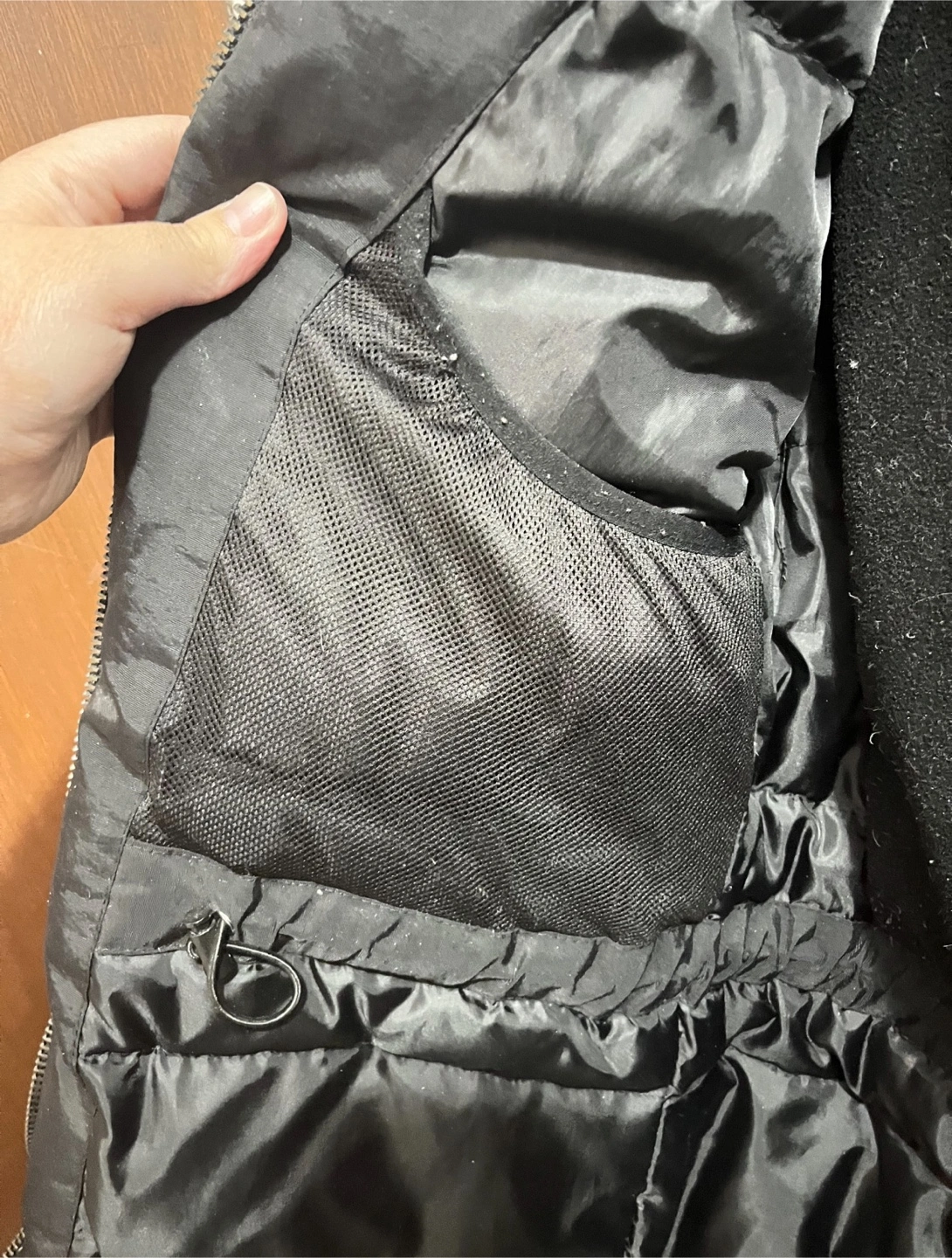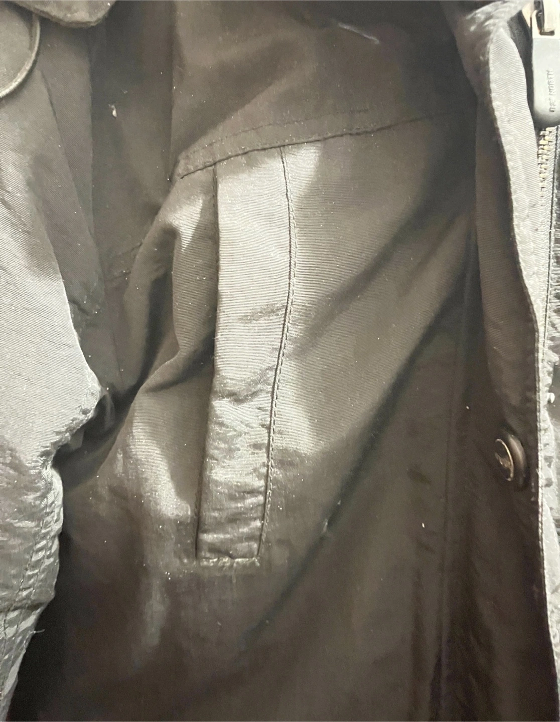 Warm winter parka. Black colour. Features a faux fur-trimmed hood, zip-up front, multiple pockets, and long sleeves. Good for cold weather.