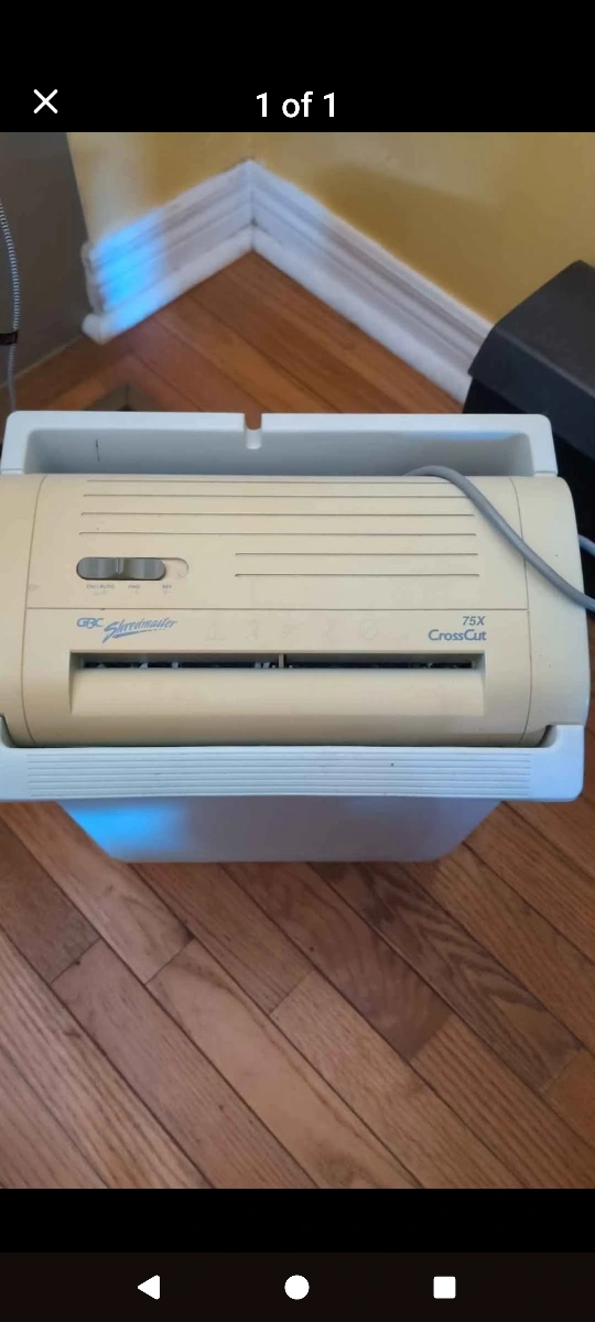 Used GBC Shredmaster 75X CrossCut shredder. Features a small bin. Good for home or small office use. with box of bags
