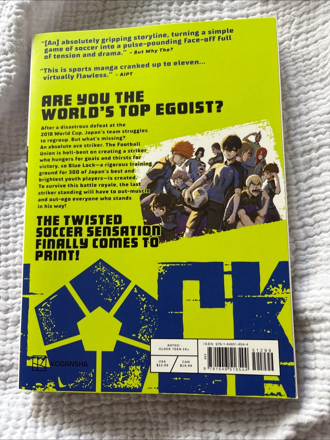 First volume of the popular manga series Blue Lock. Features gripping storyline and intense sports drama. Excellent condition.