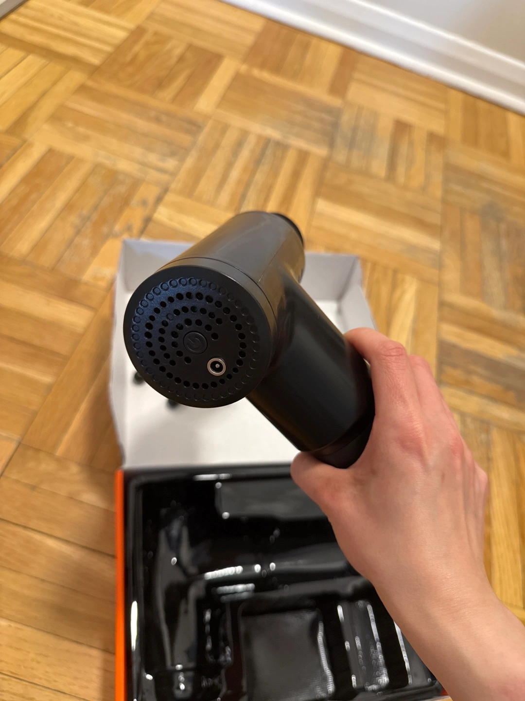 Cordless massage gun. Multiple intensity levels. Includes multiple attachments. Great for muscle recovery. Powerful and quiet operation.