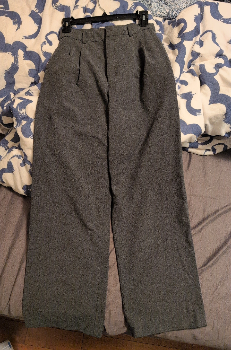 429Women's Dark Grey pleated wide-leg dress pants/ trousers from Uniqlo. XS/TP size. High waisted design, flattering wide leg. Excellent condition! Selling because I now wear S.