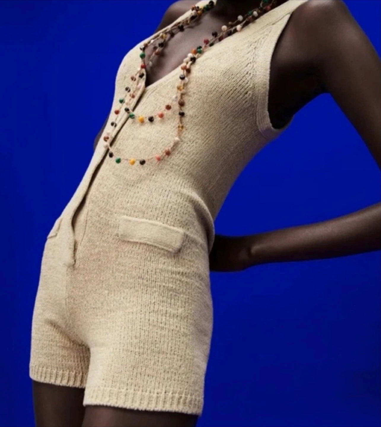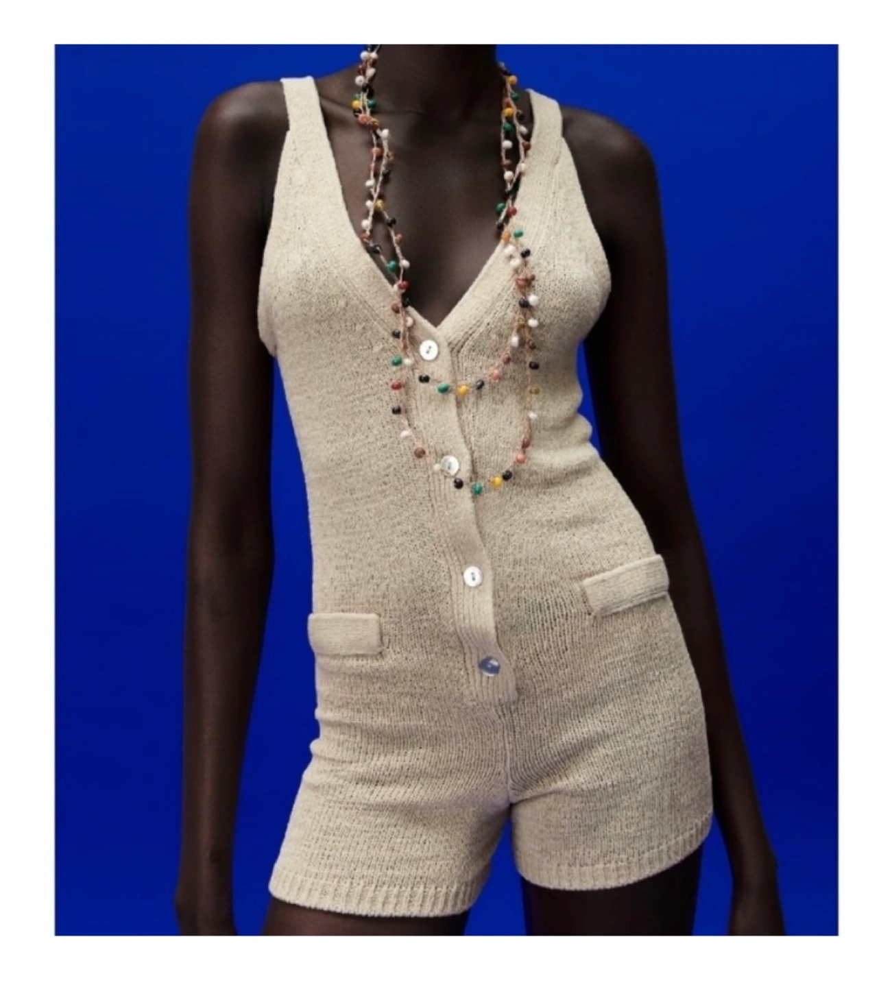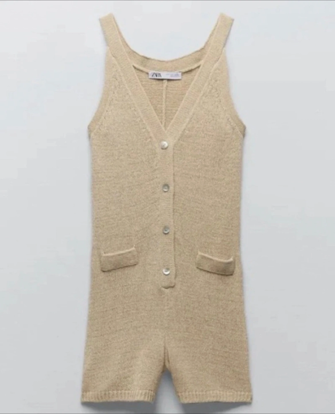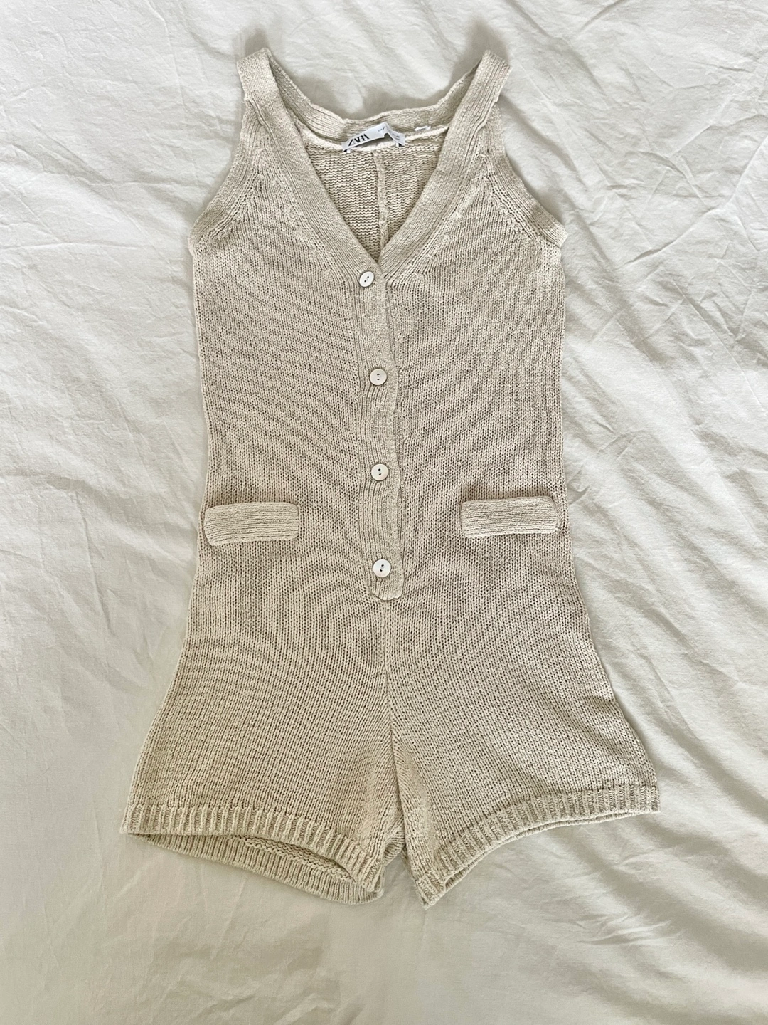 Zara Knitted Button-Up Romper - Beige XS
