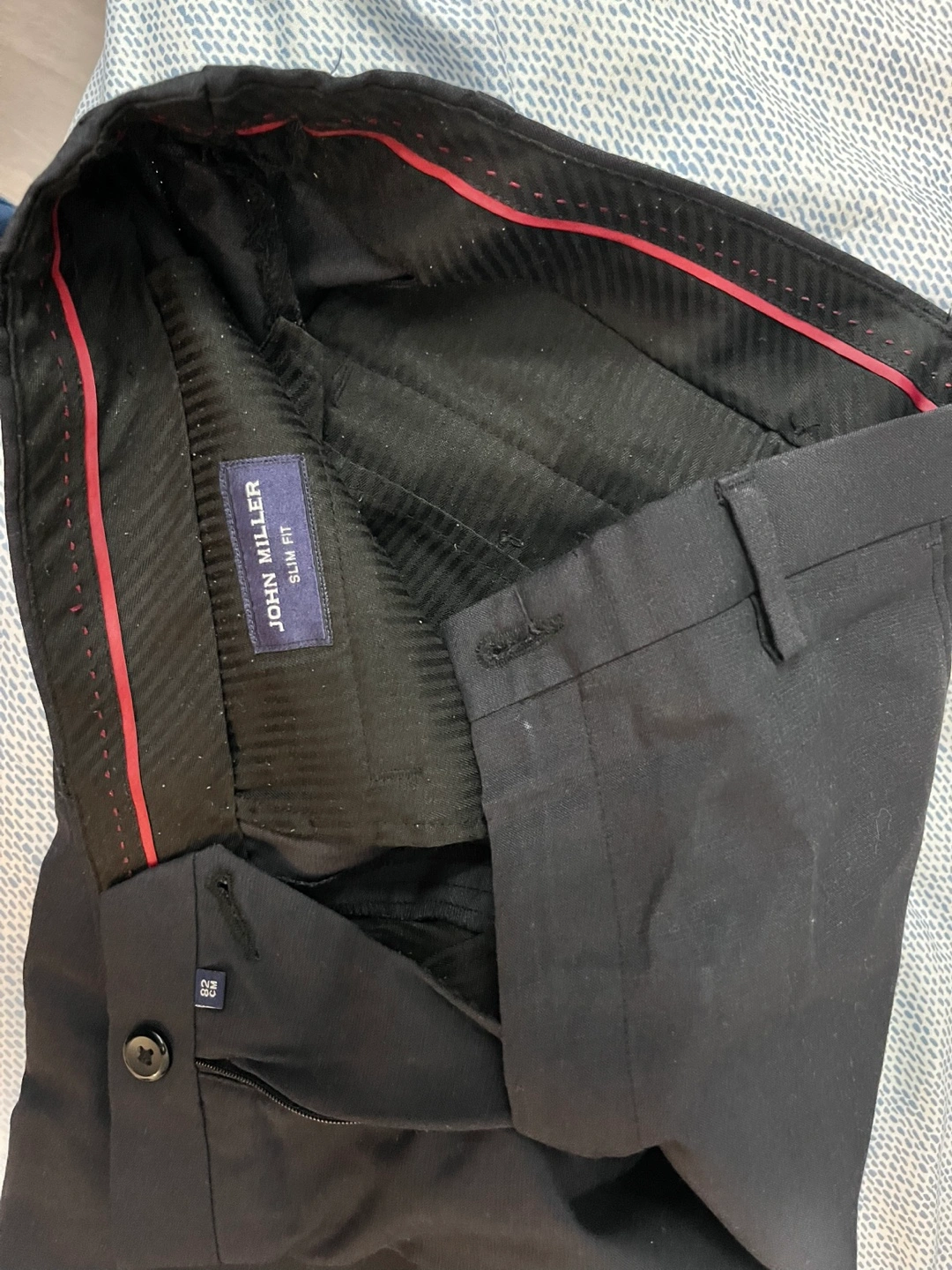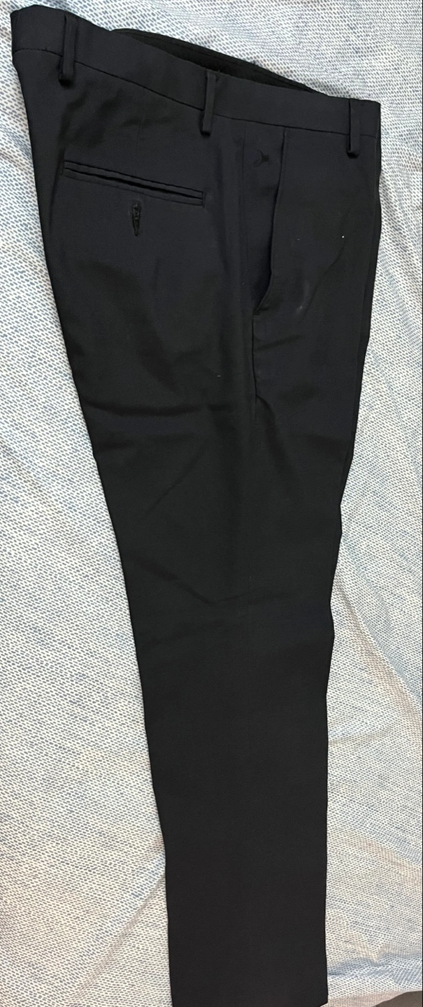 Black dress pants, slim fit. Excellent for formal occasions. Size 32x32. Poly Viscose made in India