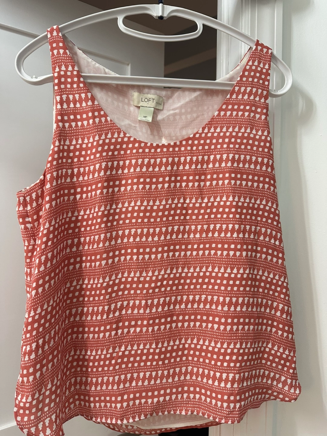 Women's sleeveless blouse. Size Medium. Burnt orange and white pattern. Flowy material. Great for summer. I need to clean up my closet.