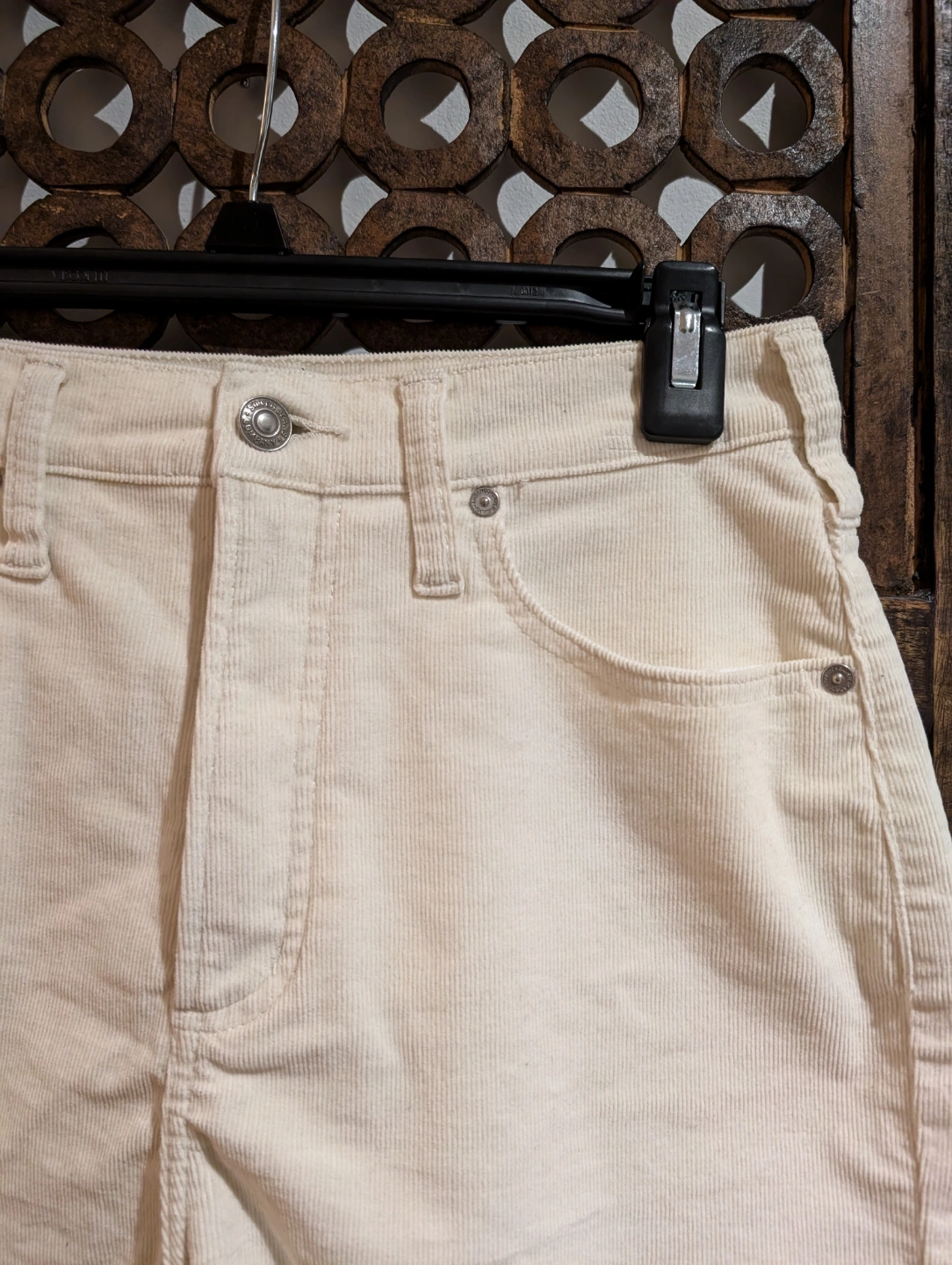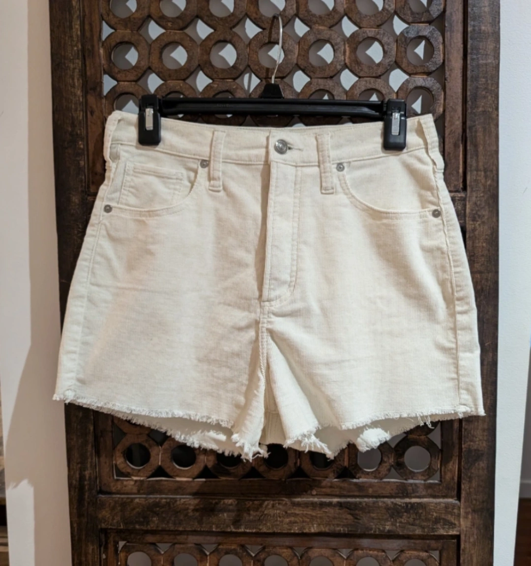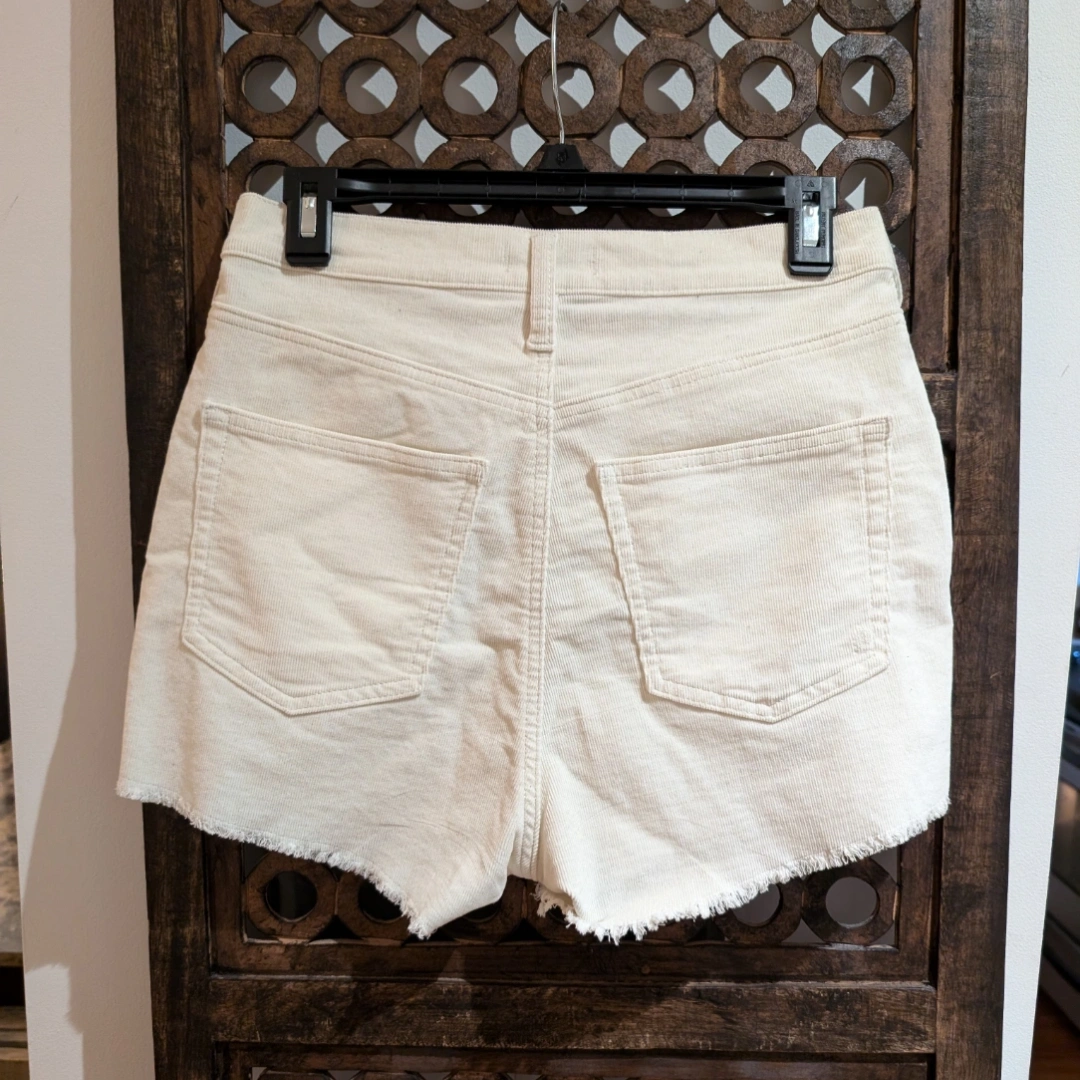 Silver Jeans cream coloured corduroy shorts. High-waisted with frayed hem. Five-pocket styling. Great condition.