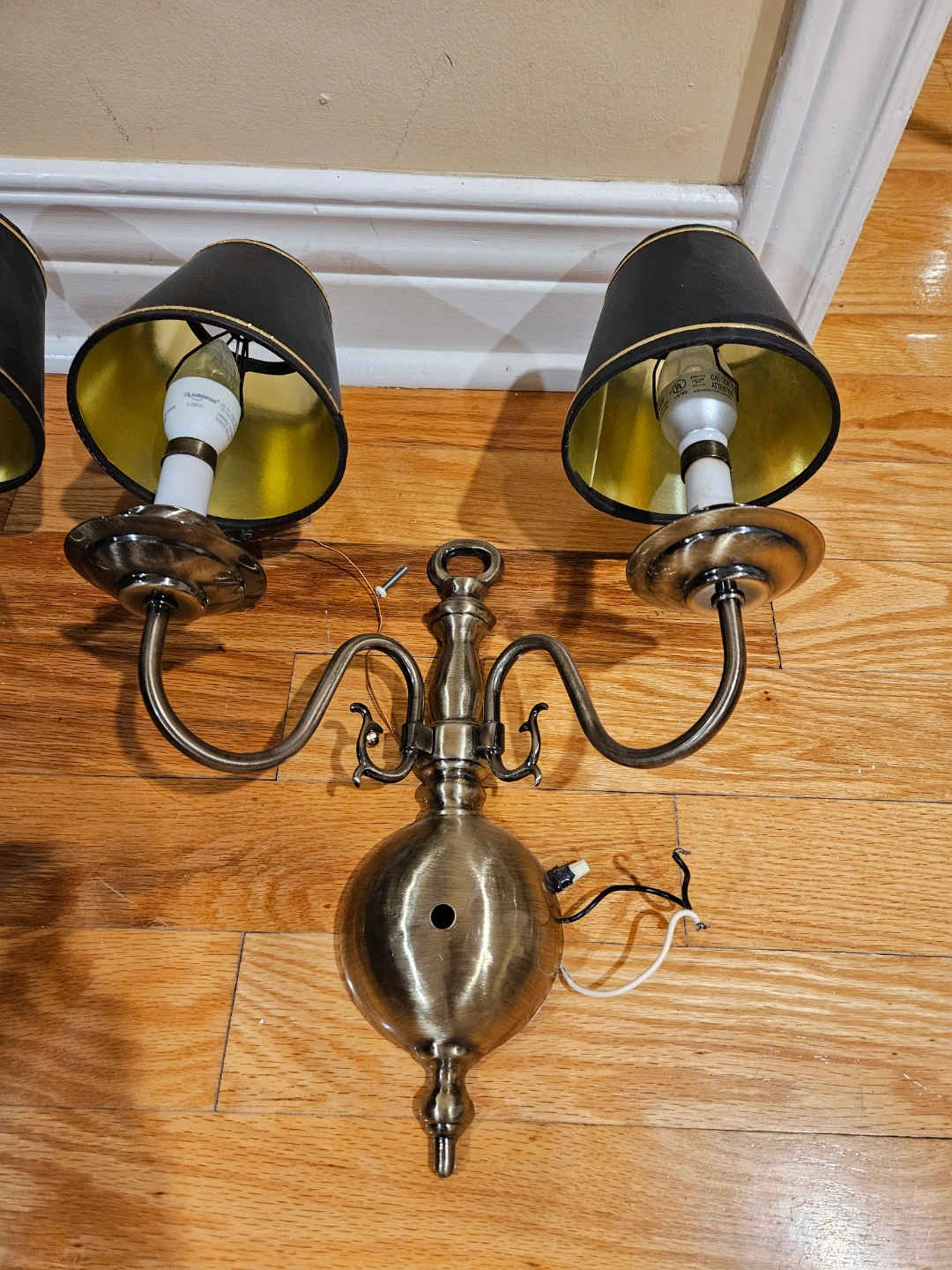 Elegant antique brass finish. Double-arm sconces. Black shades with gold inner lining. comes with hardware only best offer pls