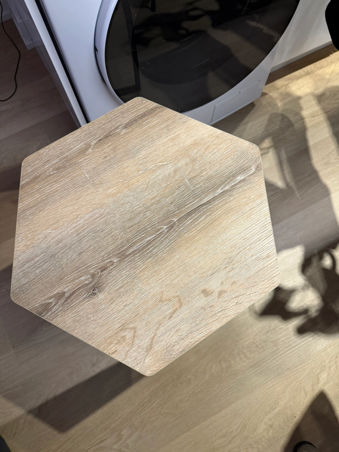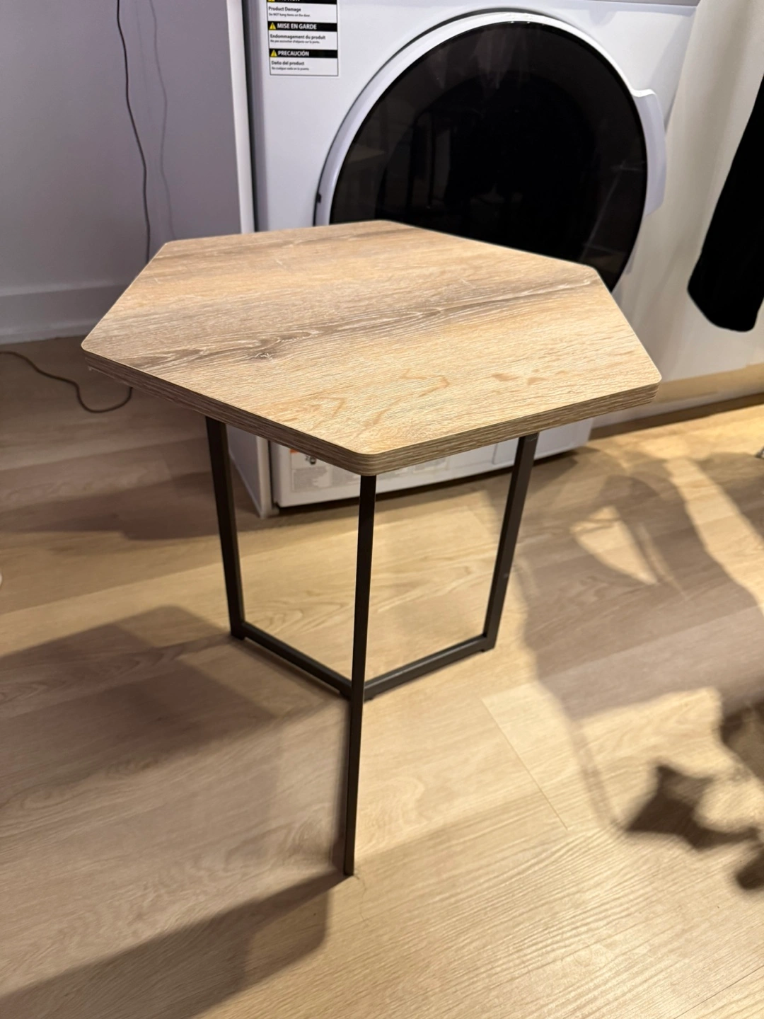 Buy & SellHexagon Side TableHexagon Side Table$25Small hexagon side table. Light wood top and black metal legs. Perfect for small spaces. Minimalist design.ConditionLike newWHERE TO MEETCanadian TireView MapSELLERverifiedUuuuuu123Bayview Village16910 reviews1 chats·2 favorites·52 viewsSEND CHAT TO SELLERHi Uuuuuu123! I’m interested in your listing.Hi Uuuuuu123! I’m interested in your listing.Get the Karrot app to chatSign In to chat