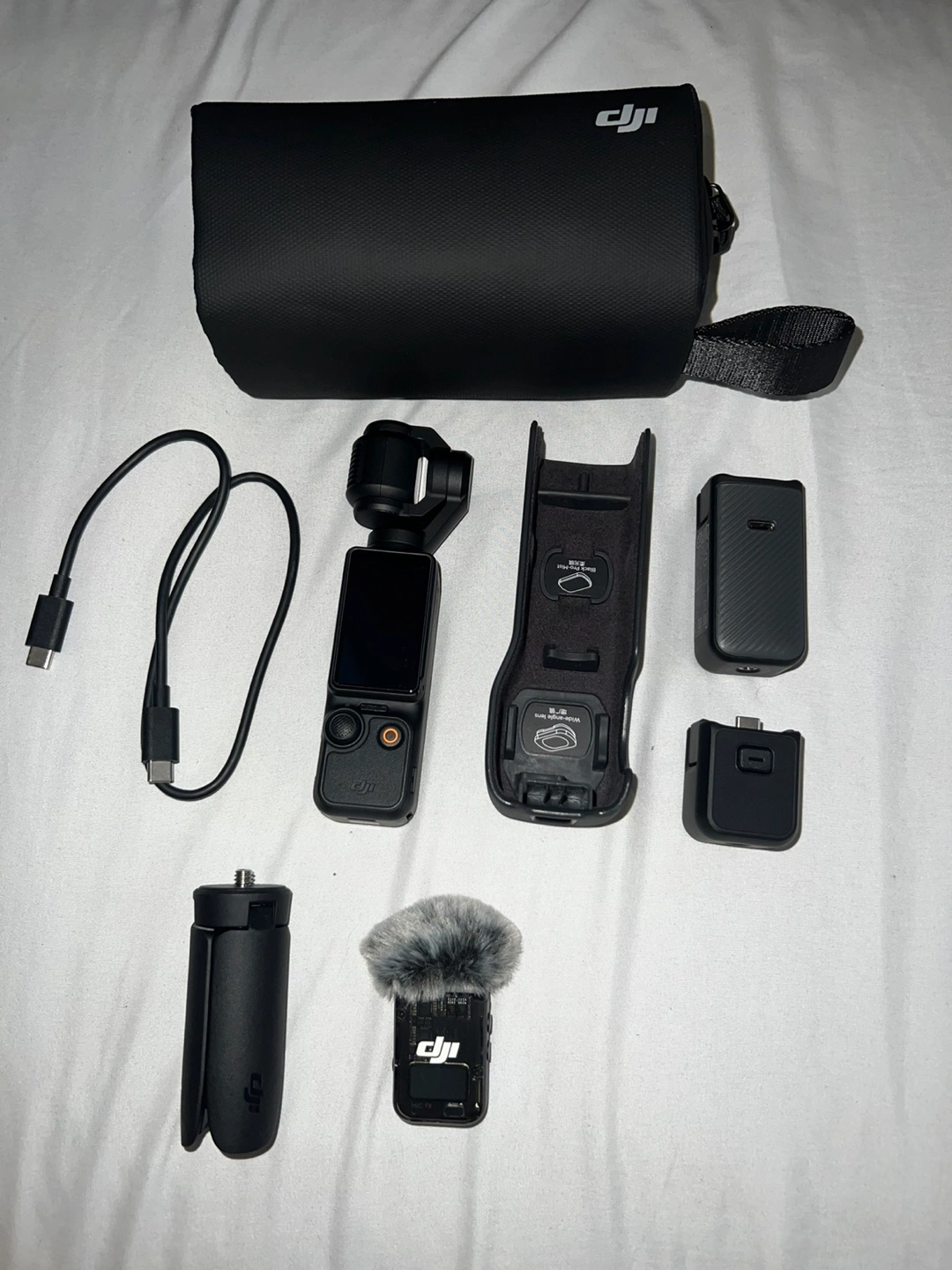 47Used DJI Osmo Pocket 3 Creator Combo. Includes gimbal, carrying case, extra batteries, microphone, tripod, and more. Everything pictured.