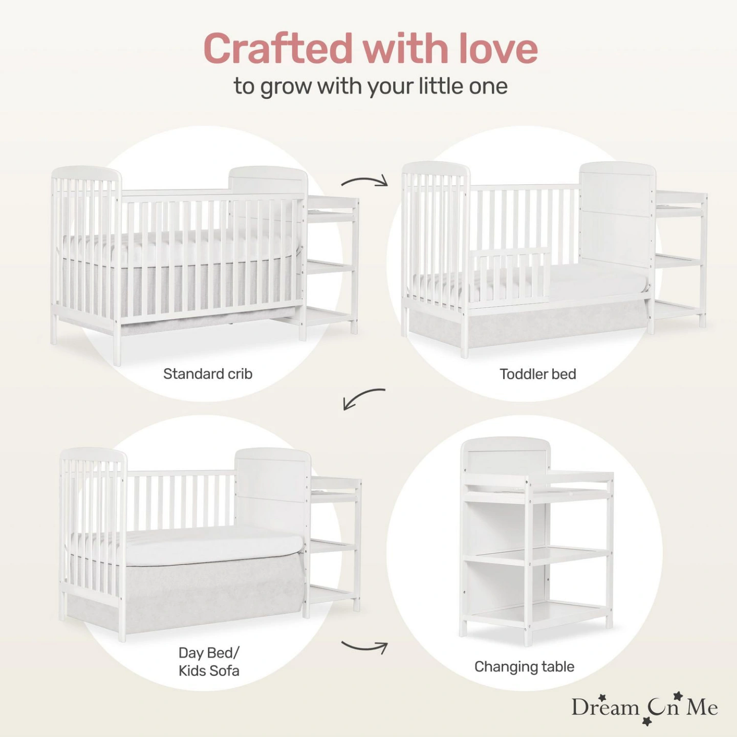 White crib and changing table combo. Converts to toddler bed, day bed, and changing table. Durable construction. Great for baby's nursery. READ ME BEFORE PURCHASING Please note that all items listed are available for pickup only at our warehouse location: 265 Rimrock Rd, Unit 2B, North York, ON Kindly ensure availability before arriving. If you have any questions or need more information about an item, feel free to message us directly. Thank you for your interest
