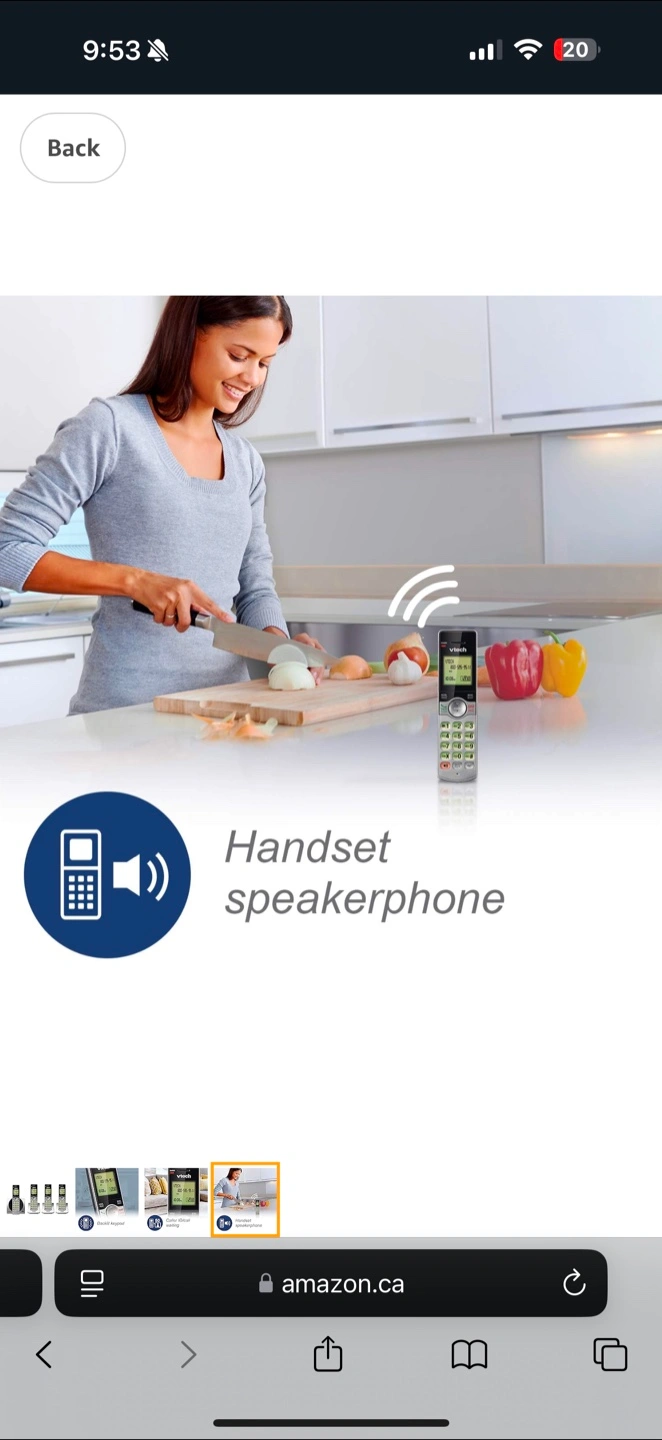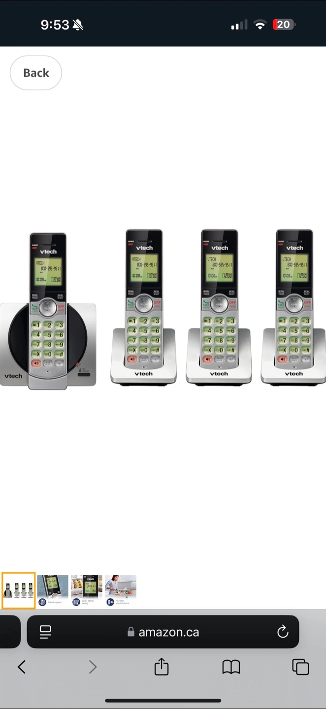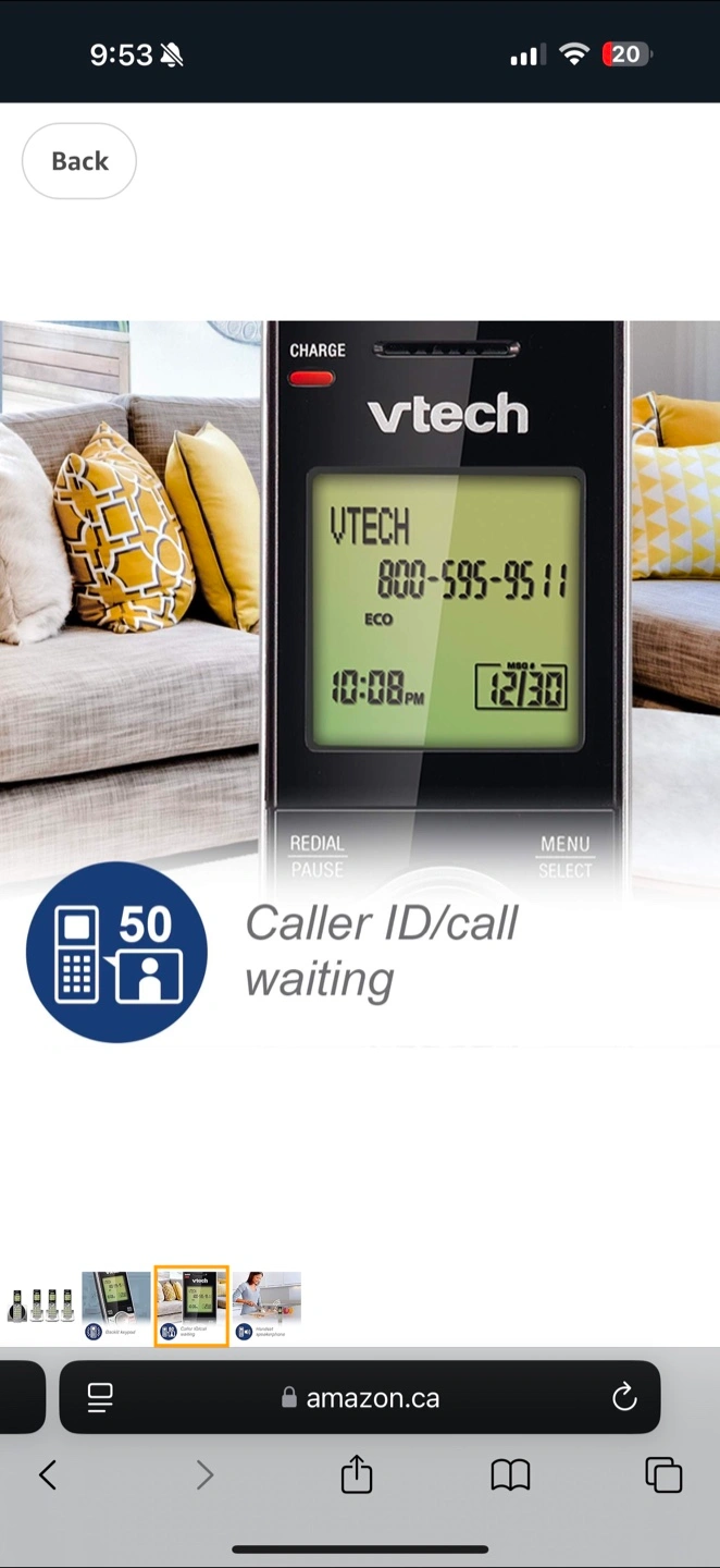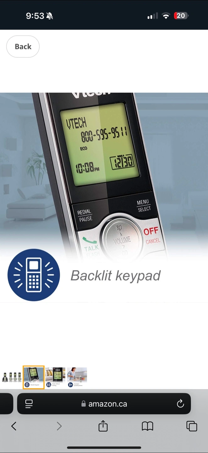 VTech cordless phone. Features caller ID, call waiting, backlit keypad, and handset speakerphone. Good for home use.