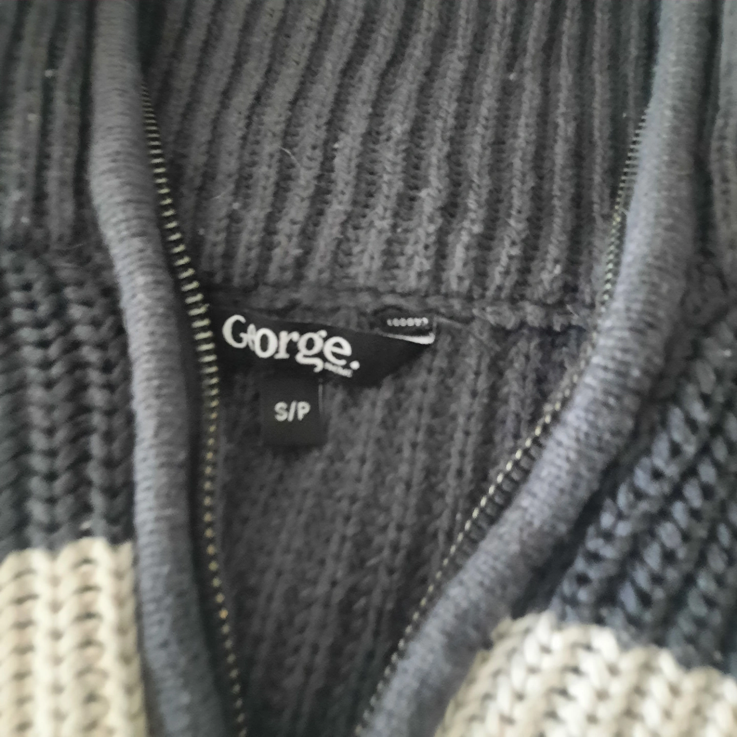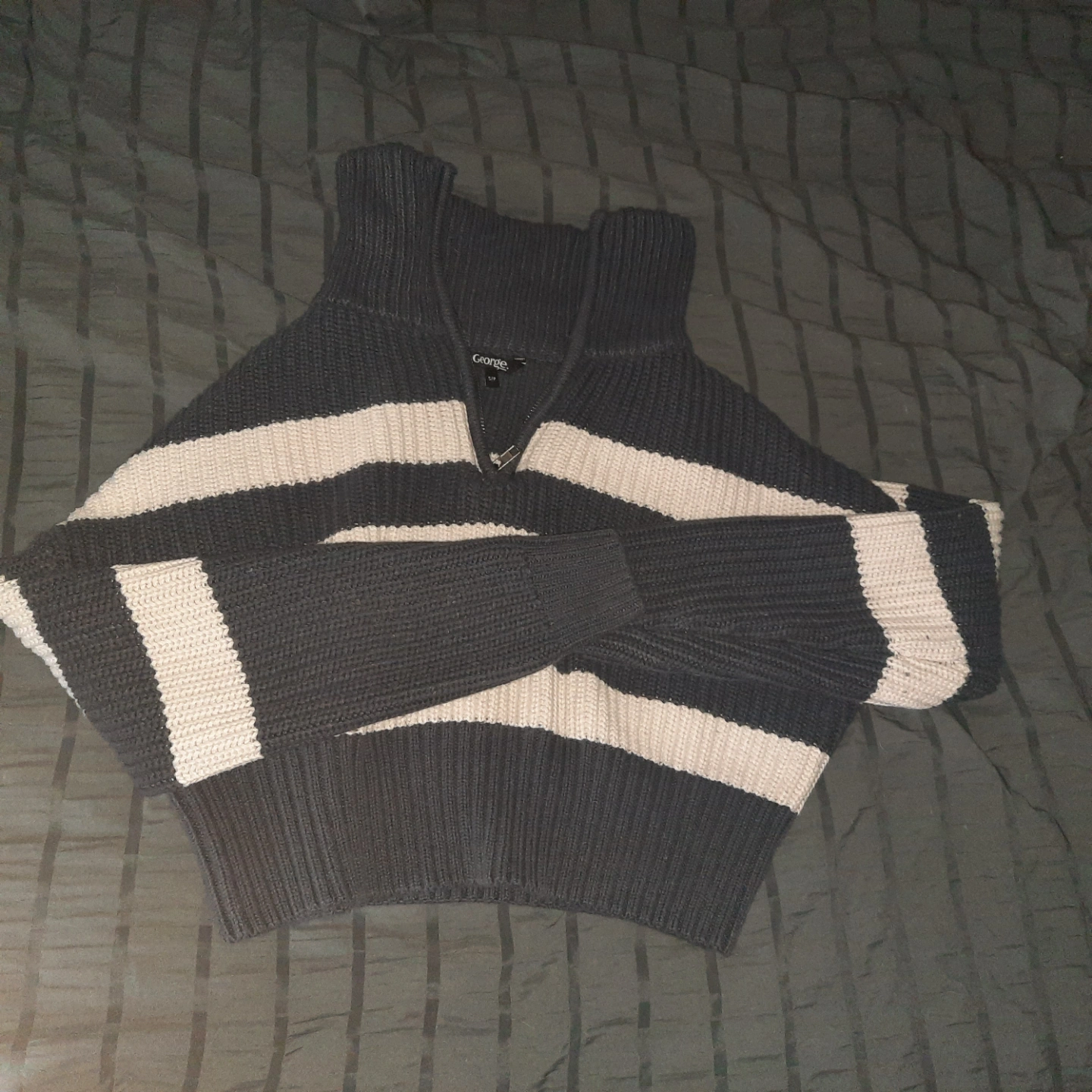 Size small. Half-zip style. Cropped length. Horizontal stripes. Soft knit material.