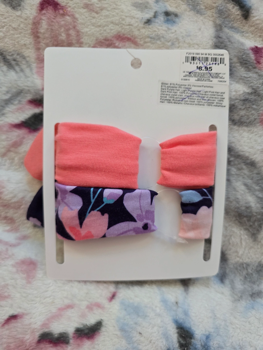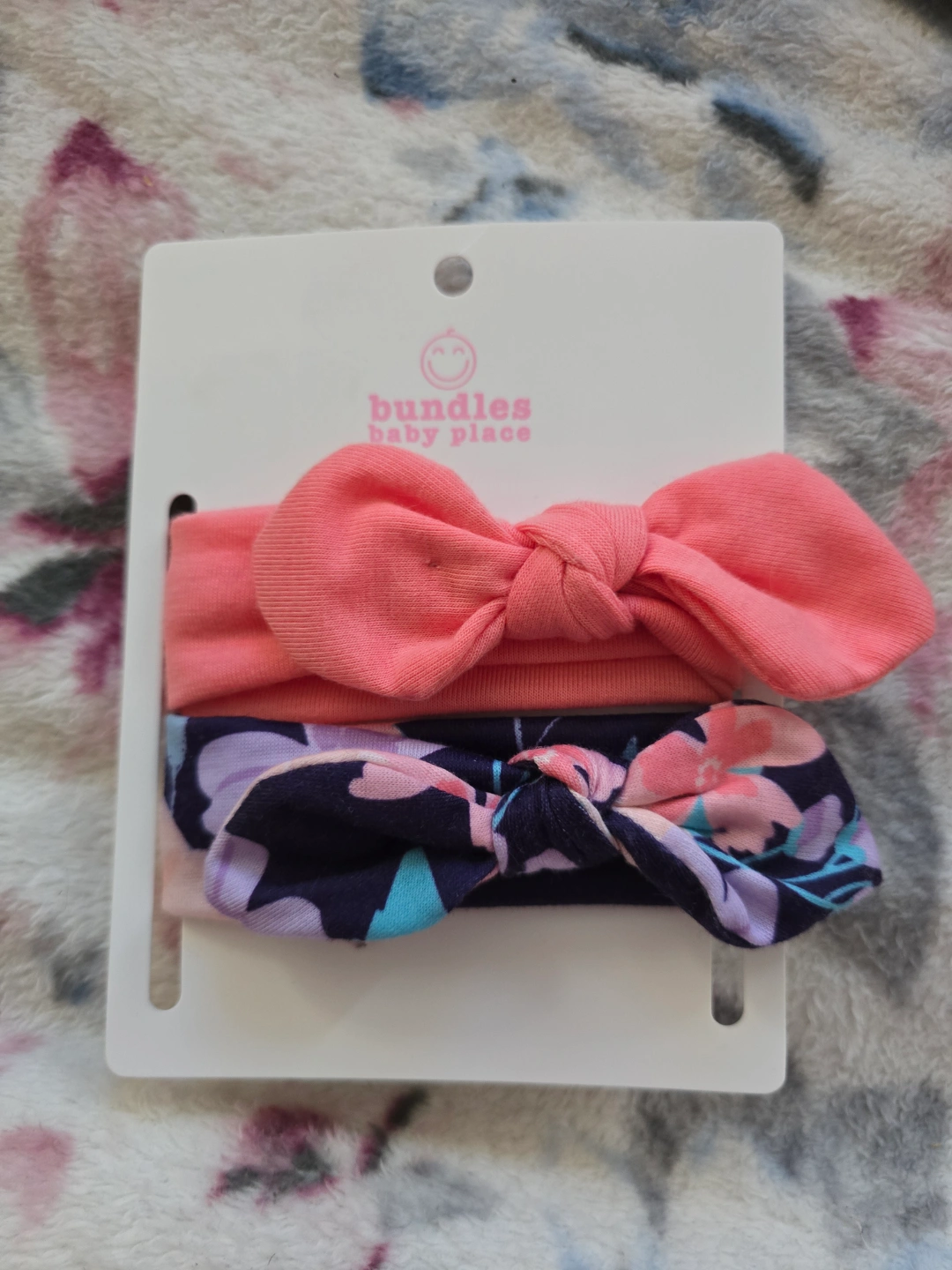 New baby headbands. Two solid coral and one floral print. Soft material. Perfect for newborns and babies.