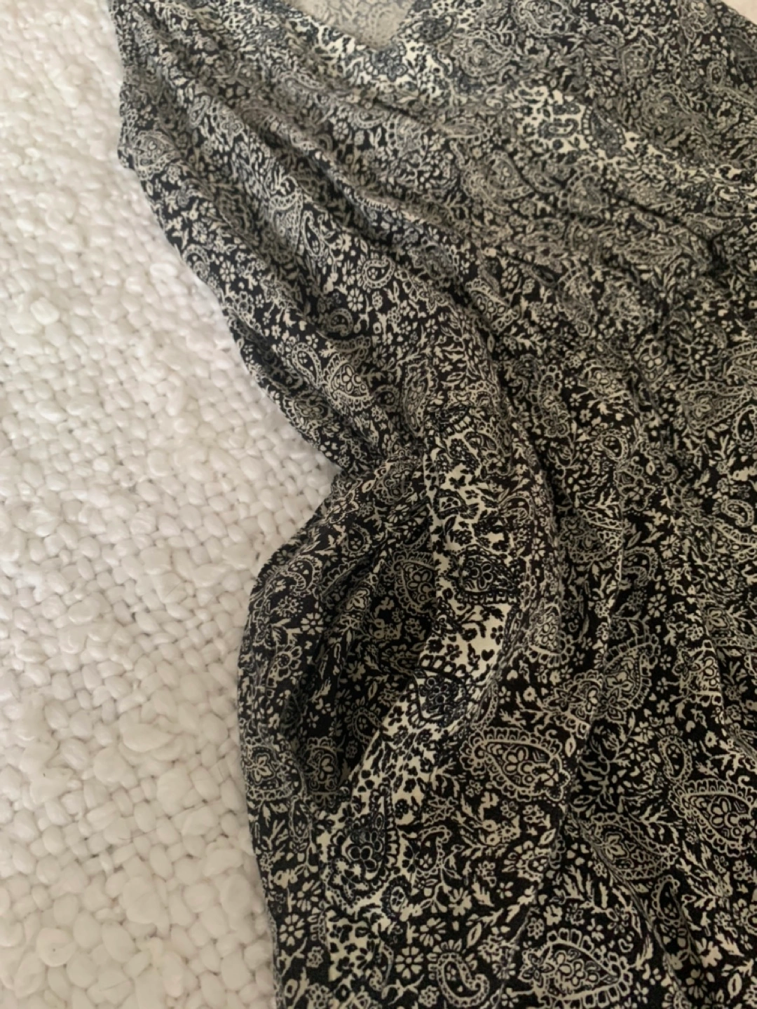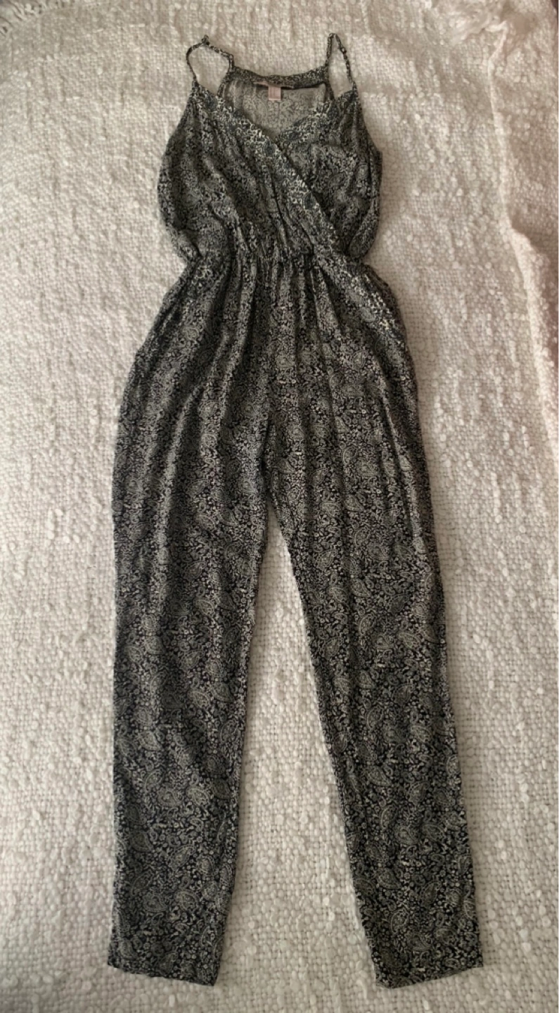 Cute black and white paisley print jumpsuit. Size extra small.