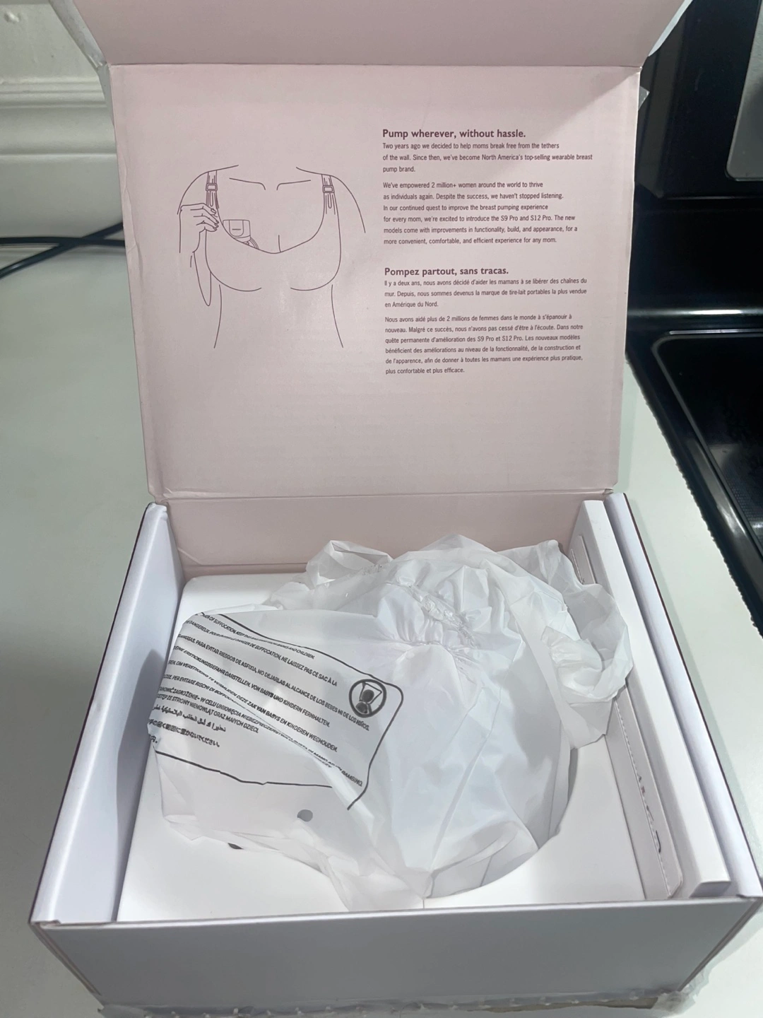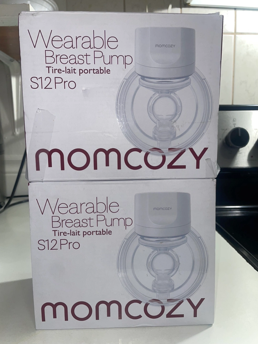Two brand new Momcozy S12 Pro wearable breast pumps. Portable and discreet. Nine suction levels. Double-sealed flange. Includes multiple modes.