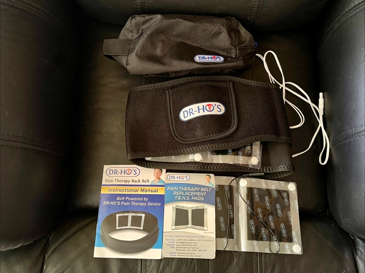 Dr-Ho's pain therapy back belt. Includes replacement TENS pads, instructional manual, and carrying case. Like new condition. PLEASE NOTE THIS KIT DOES NOT INCLUDE THE TENS MACHINE THAT POWERS THE BELT but if you already have Dr. Ho's products you can use the TENS machine you already have.