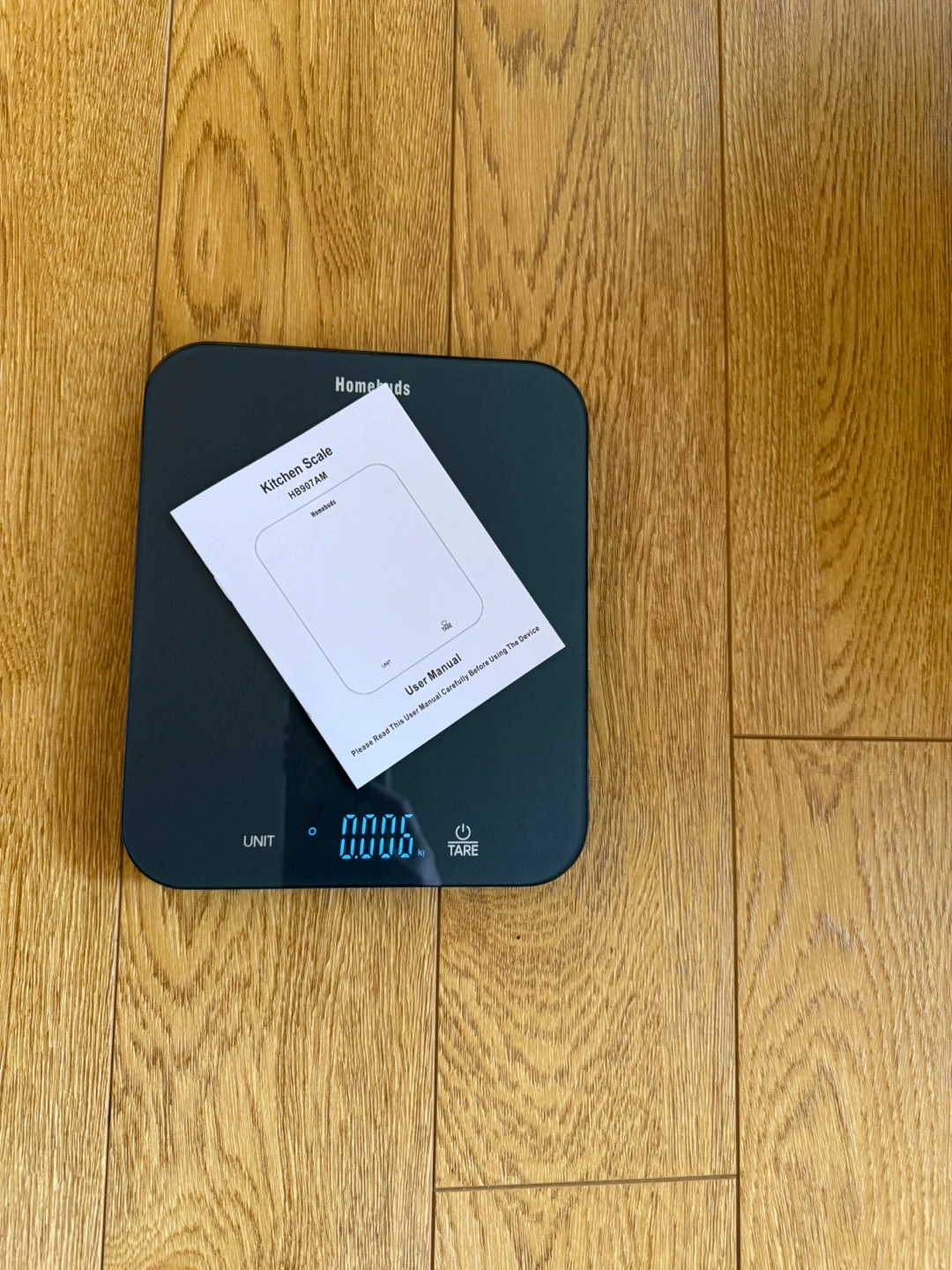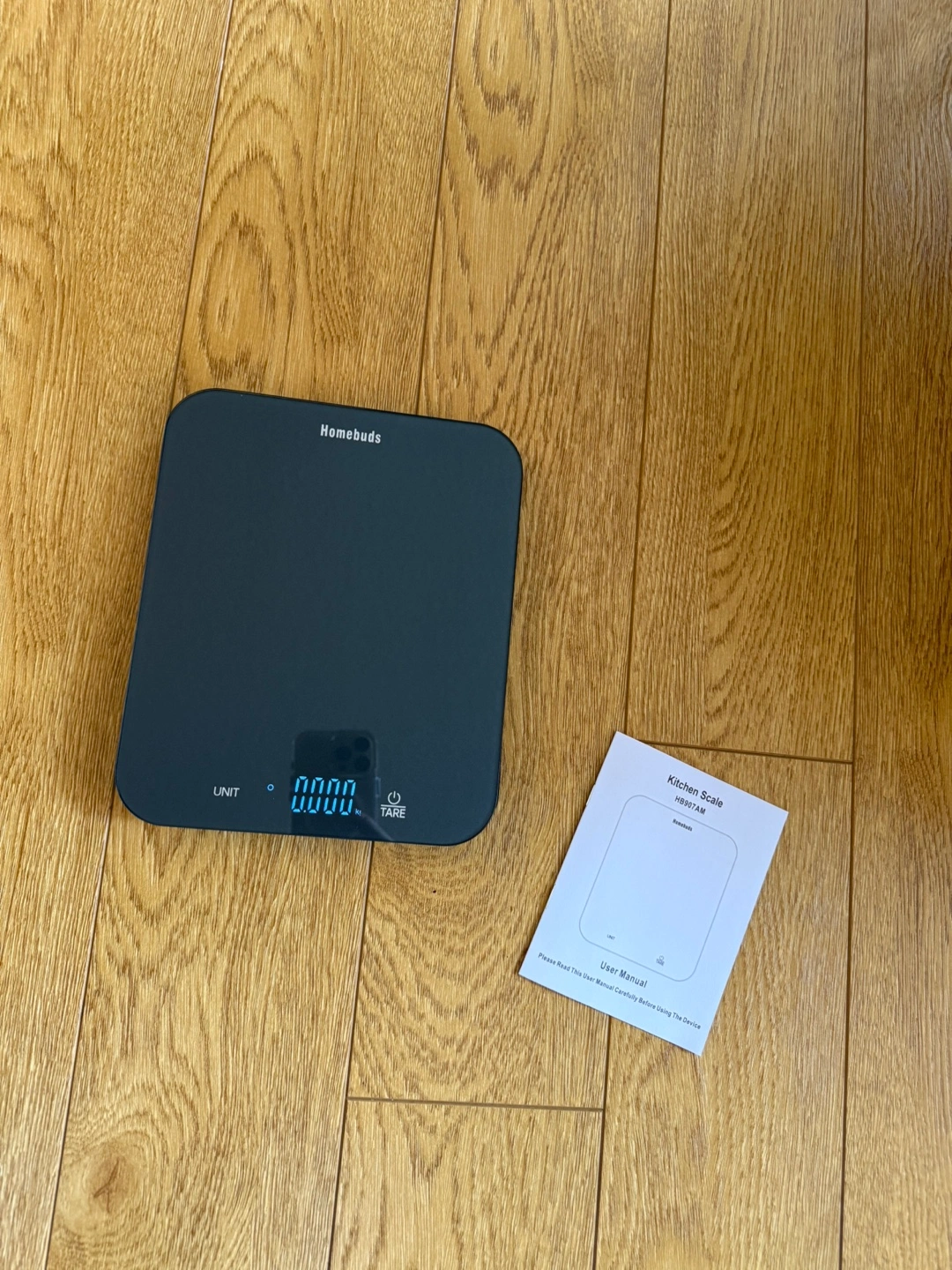 Black digital kitchen scale. Includes user manual. Even still have the box. Barely used. Compact and easy to use. Weight Grams and Ounces in 1g/0.1oz Precision for Baking and Cooking, LED Display, 3*AAA Batteries Included, Tempered Glass, Blue. Weighs up to 331b/15kg. Selling because I don’t need it.