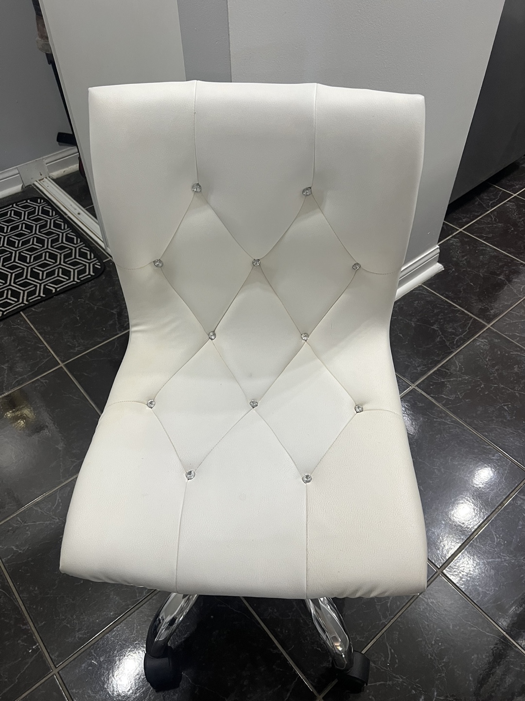 1 / 11 / 1Buy & SellWhite Rhinestone Office ChairWhite Rhinestone Office Chair$30Stylish white chair. Features a diamond tufted design with clear rhinestones. Swivel base with casters. Great for office or vanity.ConditionGoodWHERE TO MEETYorkdaleView MapSELLERverifiedAnaYorkdale1093 reviews5 chats·2 favorites·92 viewsSEND CHAT TO SELLERHi Ana! I’m interested in your listing.Hi Ana! I’m interested in your listing.Get the Karrot app to chatSign In to chat