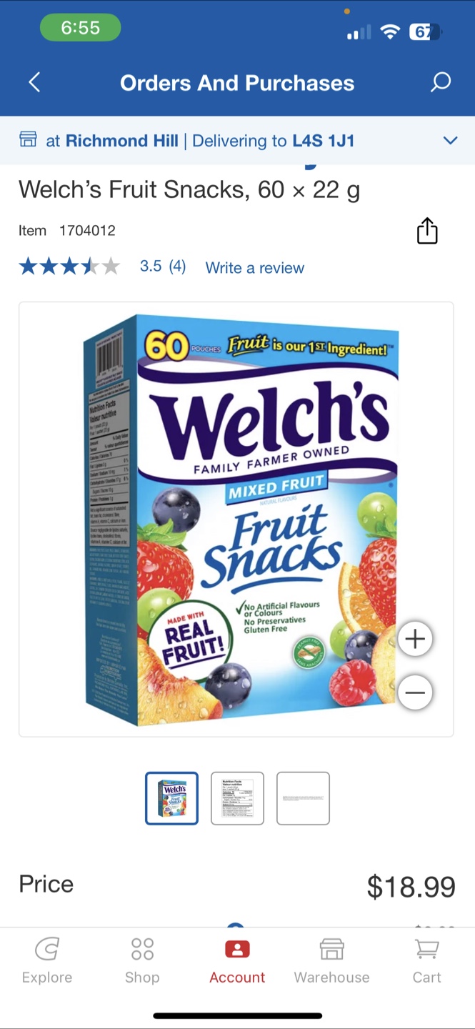 1 / 11 / 1Buy & SellWelch's Fruit Snacks - 60 pouchesWelch's Fruit Snacks - 60 pouches$7Family farmer owned, mixed fruit. Natural flavours. No artificial flavours or colours. No preservatives. Gluten free. 60 pouches, 22g each.WHERE TO MEETCheck LocationView MapSELLERverifiedJessicaDevonsleigh40133 reviews0 chats·1 favorites·17 viewsSEND CHAT TO SELLERHi Jessica! I’m interested in your listing.Hi Jessica! I’m interested in your listing.Get the Karrot app to chatSign In to chat