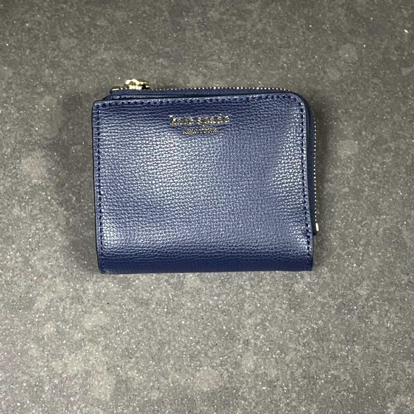 Looking for a sleek and stylish wallet that can keep up with your busy lifestyle? Look no further than our navy blue women's bi-fold snap closure wallet! Crafted from the highest quality cow hide leather, this wallet is not only durable, but also incredibly soft and supple to the touch. The pebbled leather exterior is accented with polyurethane trim and gold tone hardware, adding a touch of elegance to your everyday look. FEATURES: •Snap closure •Pebbled Leather w/ Polyurethane trim •Gold Tone hardware •One back zip pocket •One inside bill compartment •Eight inside card slots •Logo at front •Lined •Imported SIZE: 4"W x 3.5"H x 1"D