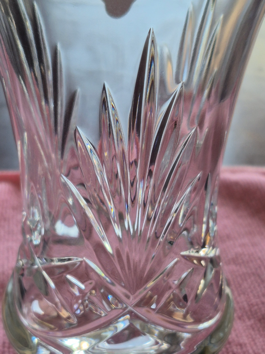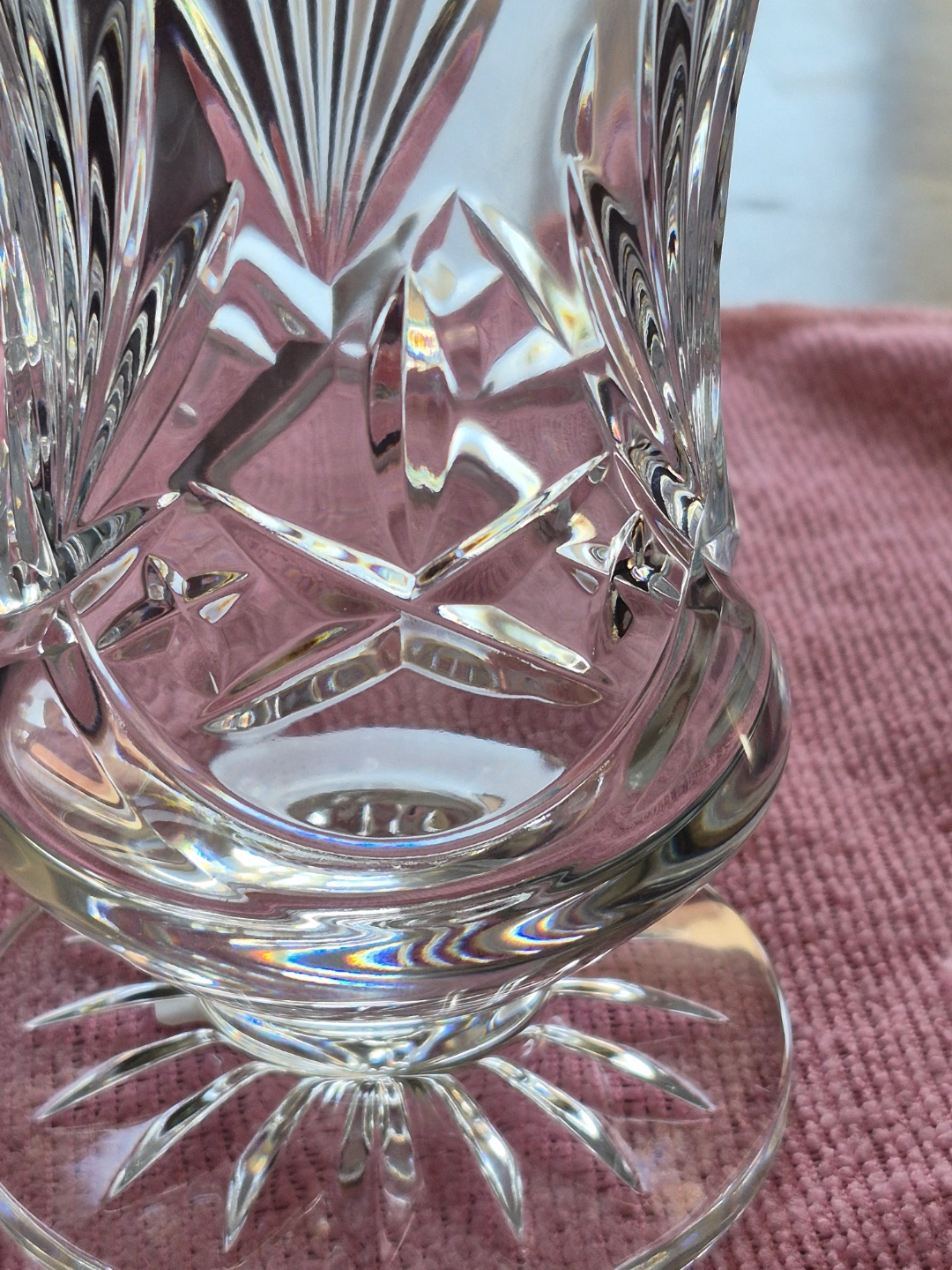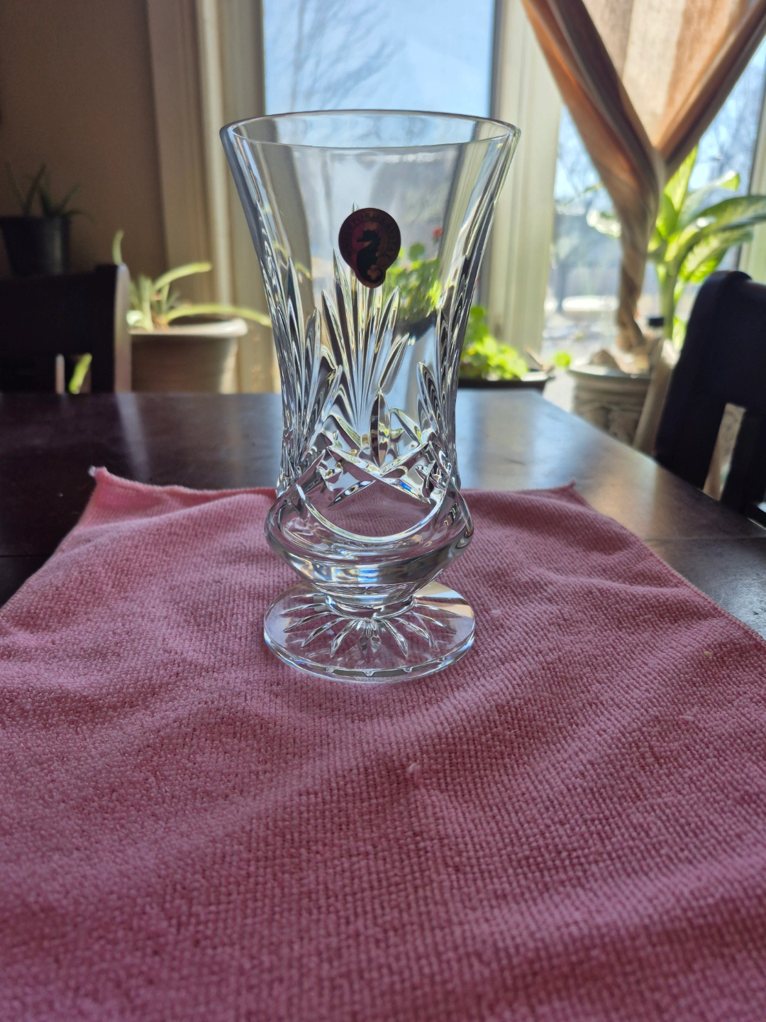 This is a brand New Waterford Crystal Vase, still in it's original packaging! Made in Slovania This elegant vace features a timeless design, perfect for displaying your favorite flowers or as a sophisticated decorative piece. Add a touch of luxury to your home with this exquisite Waterford Creation. 8 inches tall. similar Waterford crystal vases start at $150.