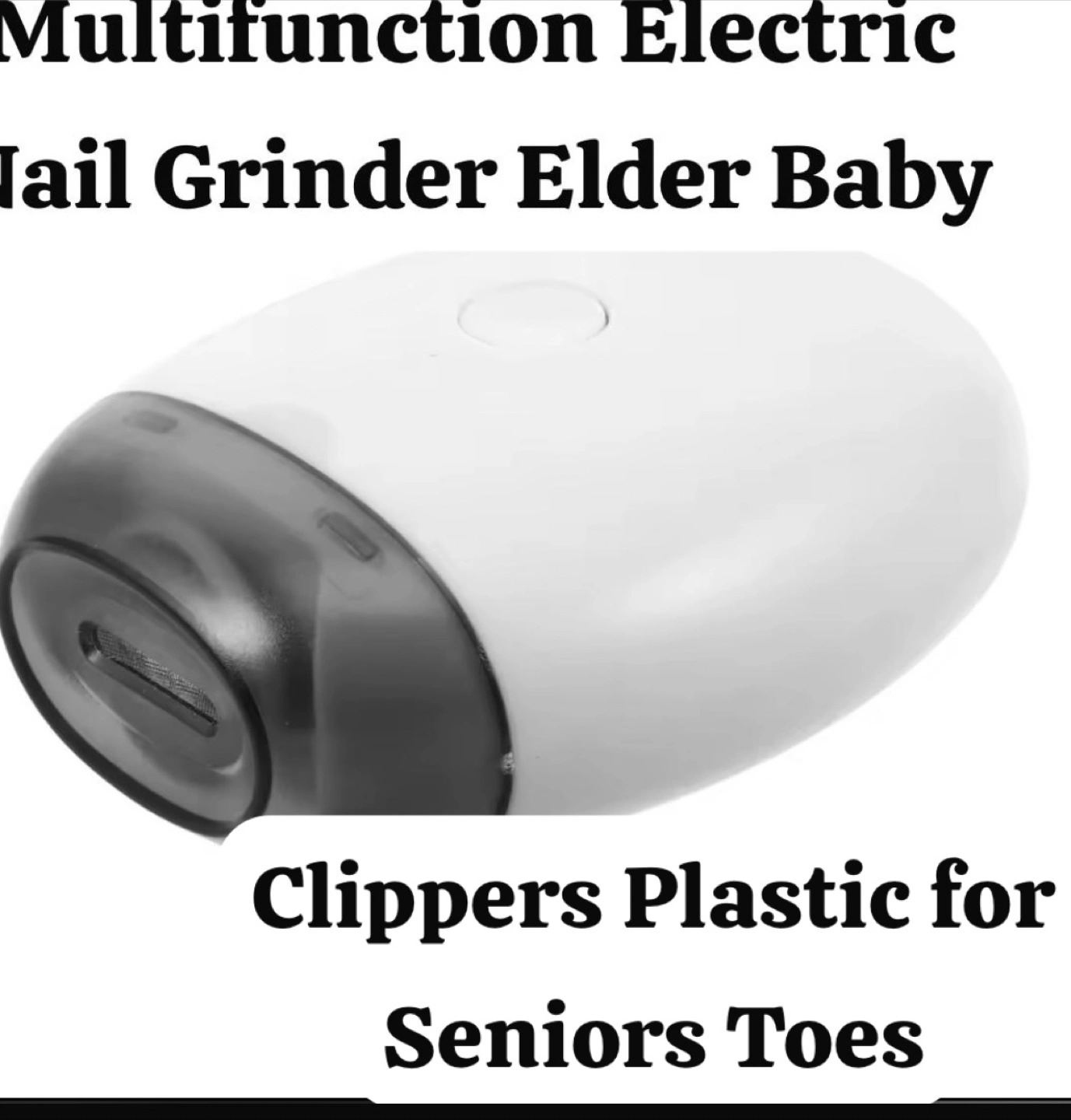 Multifunction electric nail grinder. Perfect for seniors and babies. Features cutting and grinding, debris storage, high and low speed settings, safety protection, type-C charging, and lighting. Compact and easy to use.