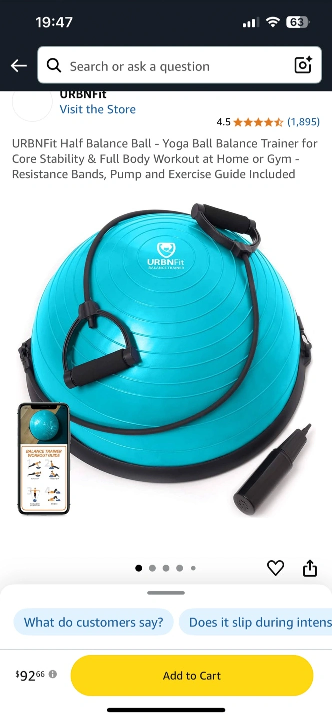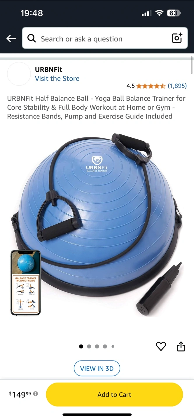 Blue half balance ball. Includes resistance bands, pump, and exercise guide. Great for home or gym use. Core stability and full body workout.Brand new. Asking $65. Cash only