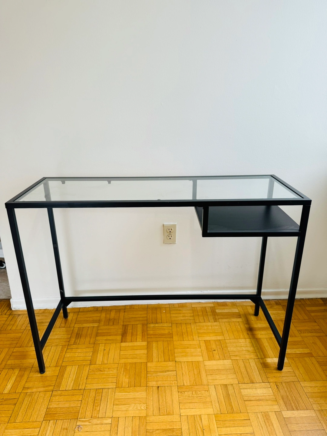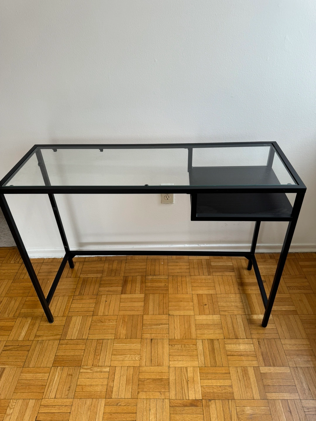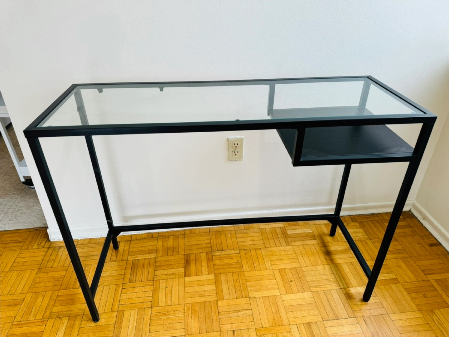 BLACK IKEA VITTSJO Glass-Top Desk with Lower Shelf