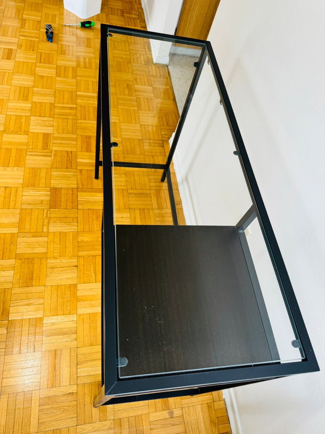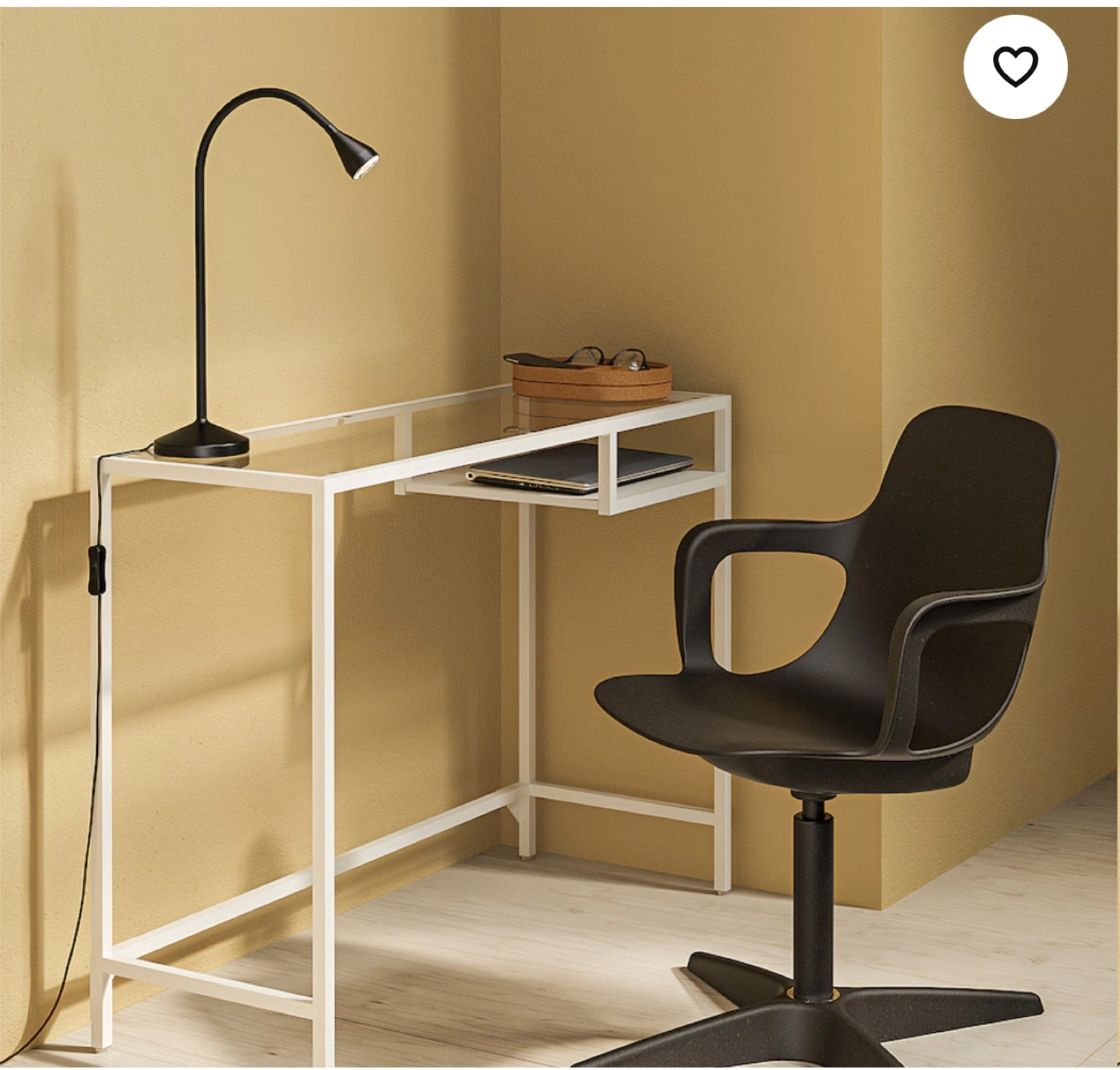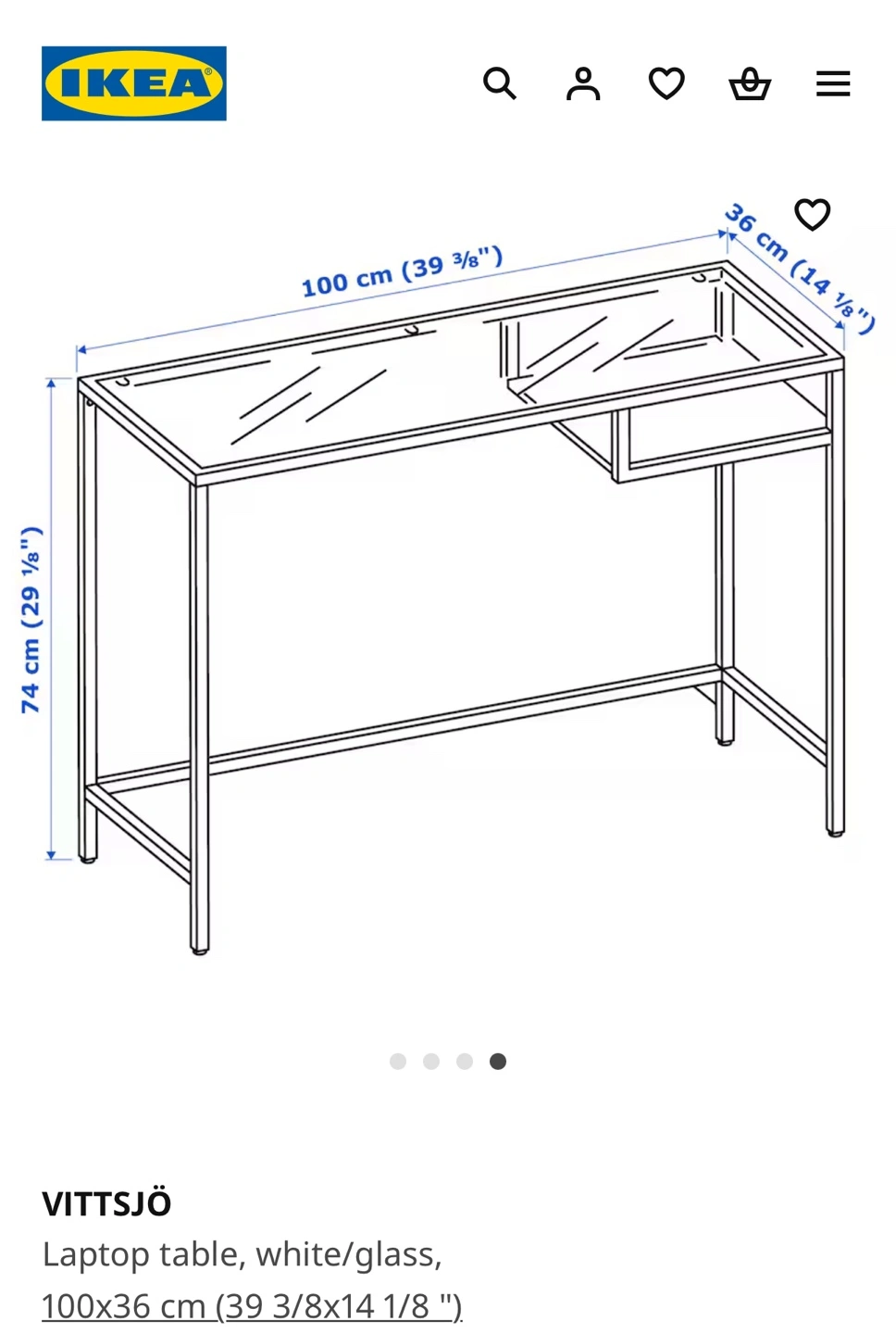 Black metal frame. The stylish and slim VITTSJÖ laptop table in metal and tempered glass has clean lines and is an easy-to-place piece of furniture. With the open and airy design, you enjoy a good and discreet work surface. Glass top. Small lower shelf. Good for small spaces.