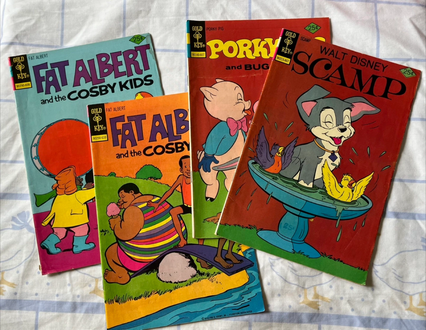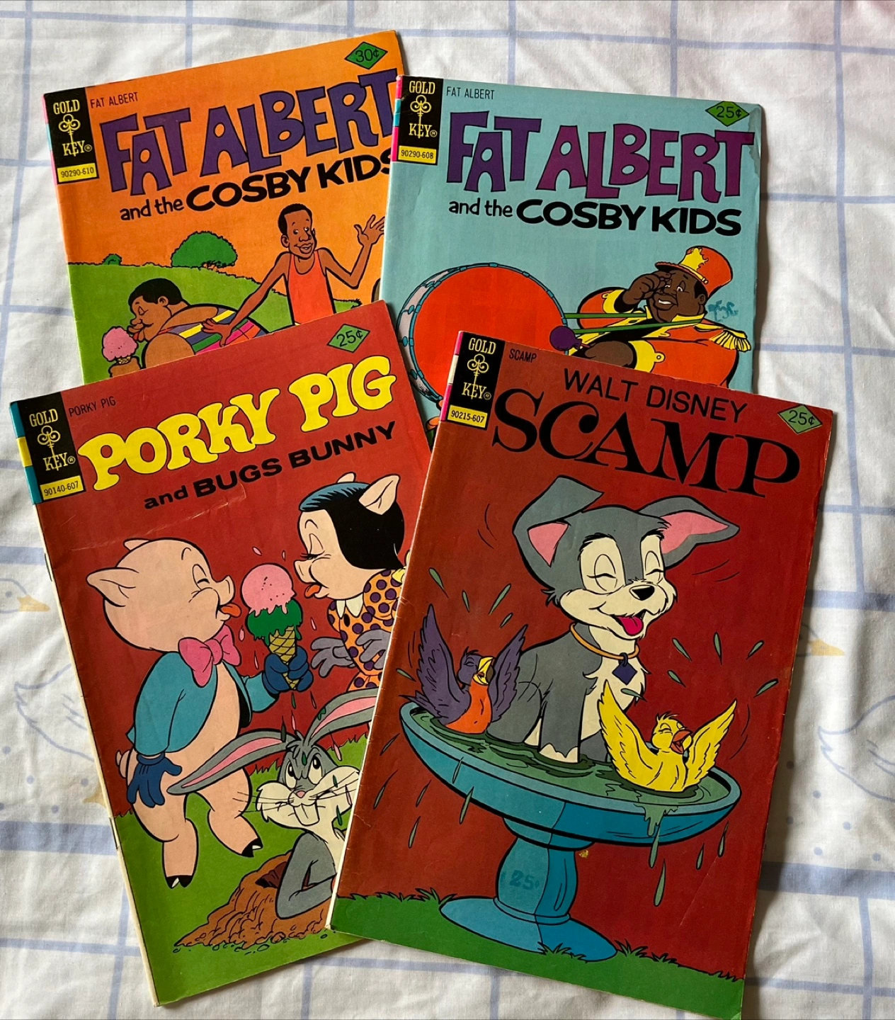 Collection of vintage Gold Key comics. Includes Fat Albert and the Cosby Kids, Porky Pig and Bugs Bunny, and Walt Disney's Scamp. Back issues include advertisements.