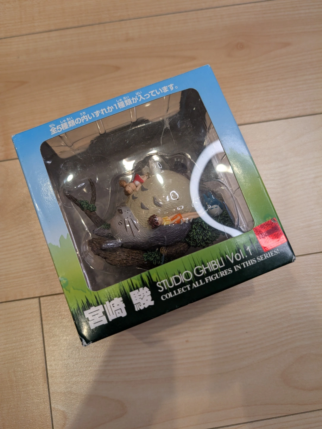 Adorable Studio Ghibli figurine. Features Totoro and other characters from My Neighbour Totoro. Collectible item. Part of a series. Comes in original box. Great gift for animation fans.