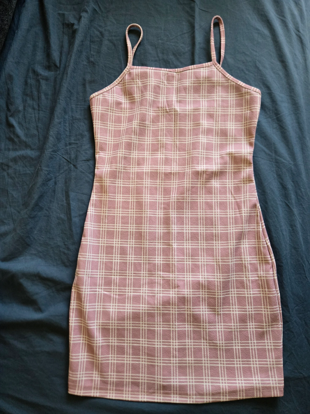 Cute mini dress. Pink and white plaid pattern. Spaghetti straps. Size small. Great for summer.